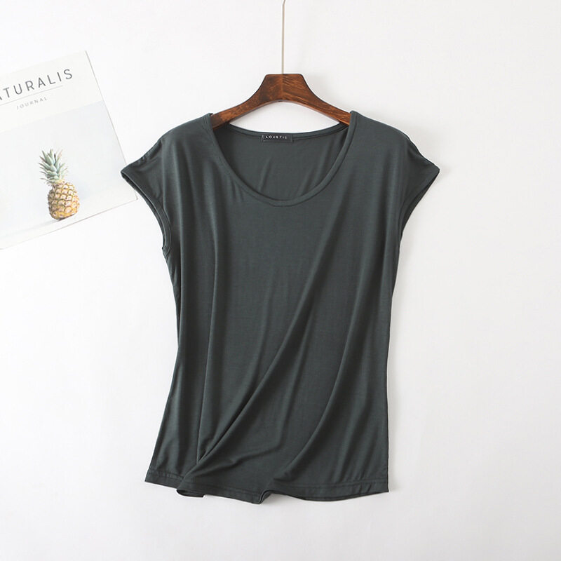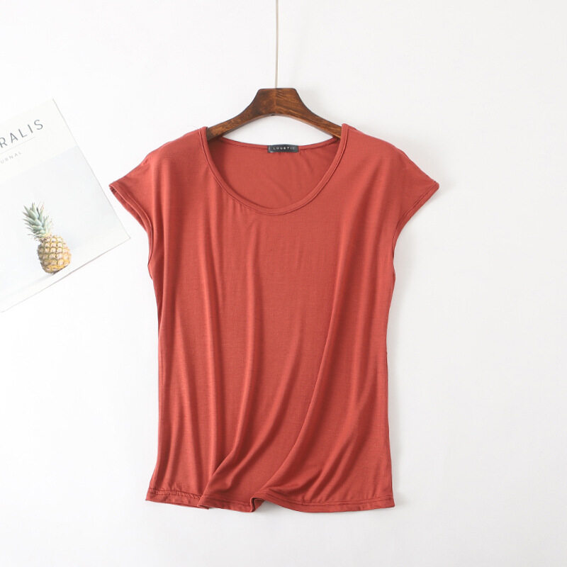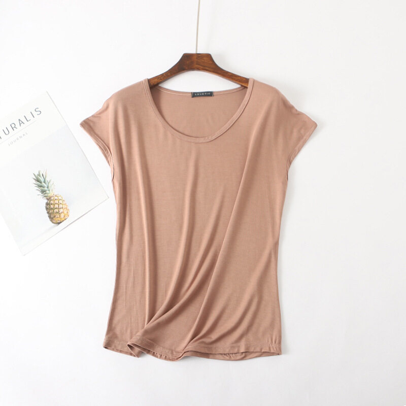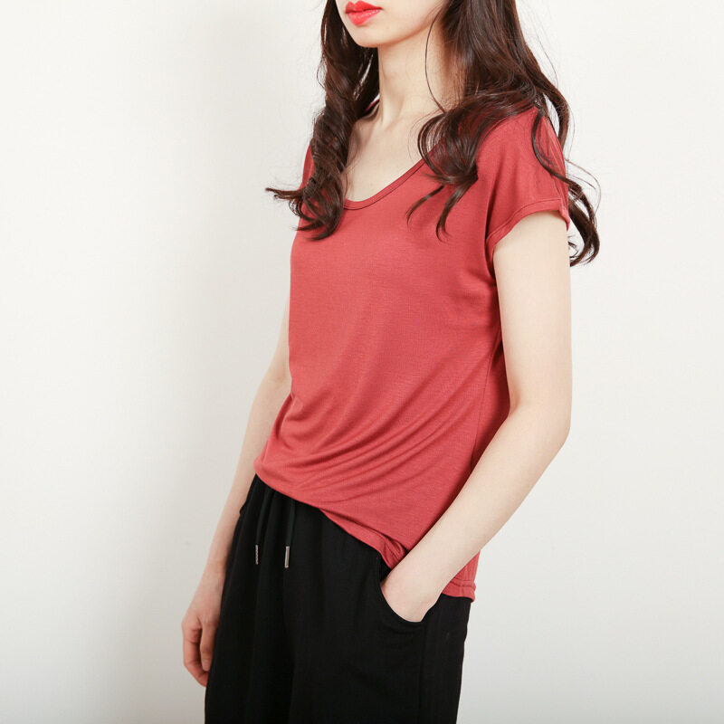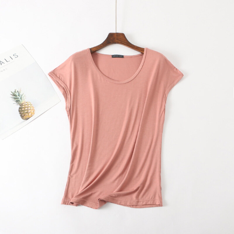Ruizhijzg Ready stock Bamboo Fiber T shirt for Women Home Wear Summer Sleeveless Shirt Round neck Top Plain White Pink Modal Cotton Black Dark Blue Green Ladies Slim Tshirt Korean Style
