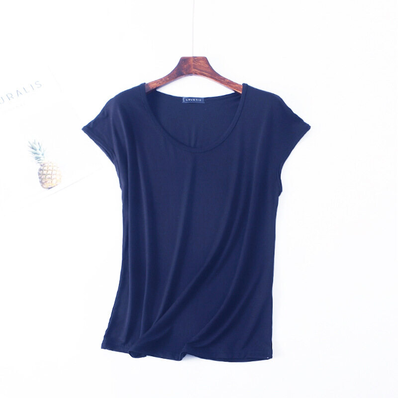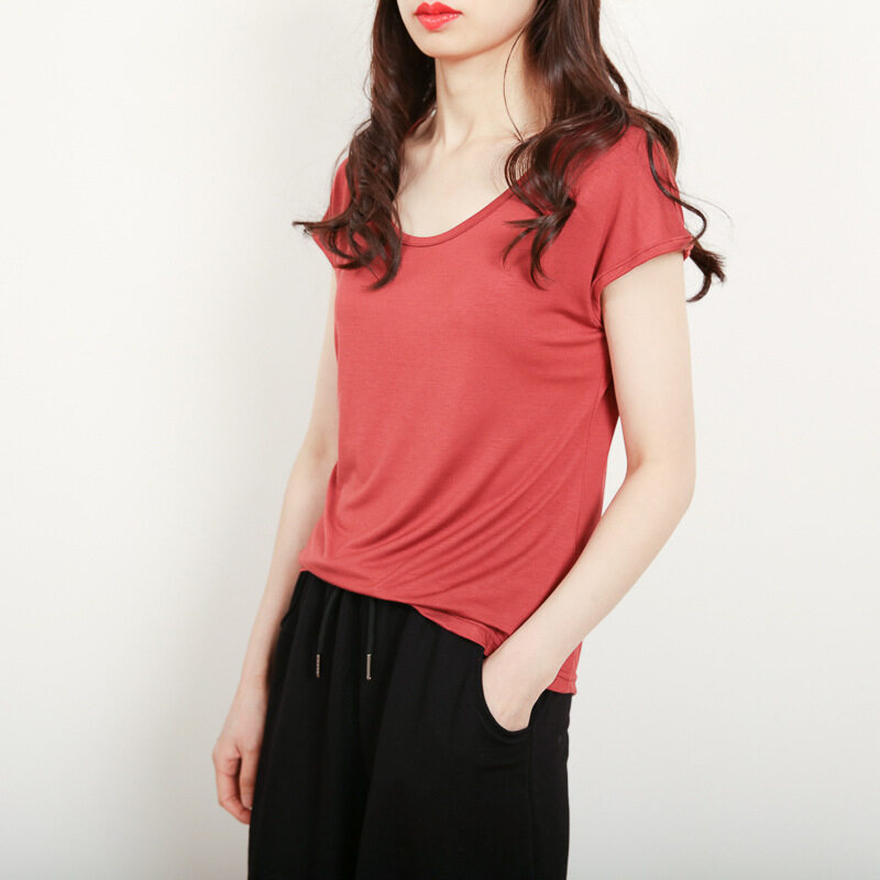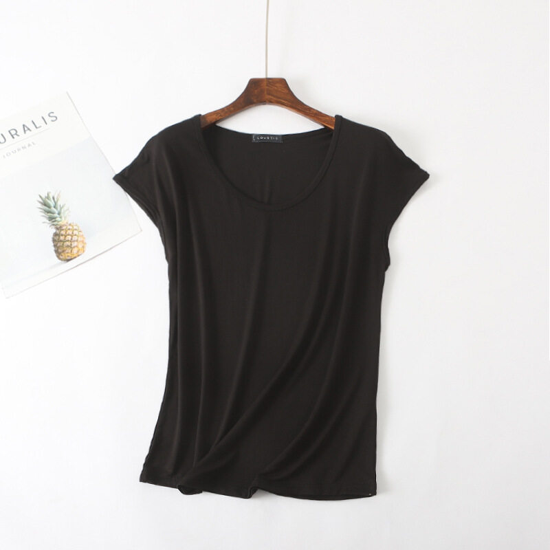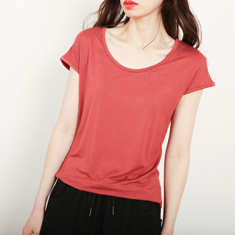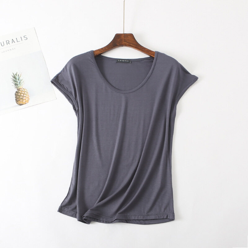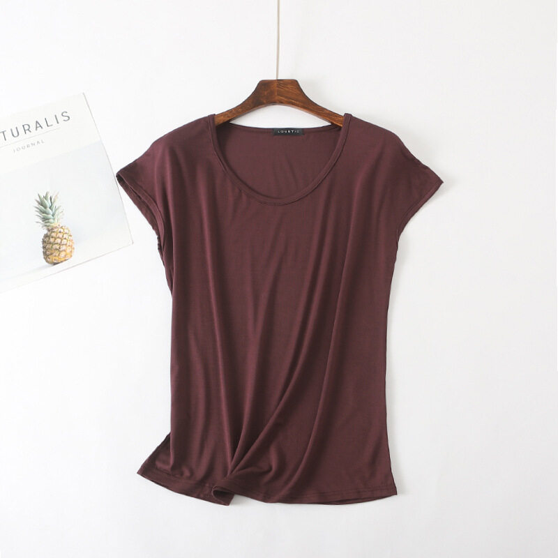 Ruizhijzg Ready stock Bamboo Fiber T shirt for Women Home Wear Summer Sleeveless Shirt Round neck Top Plain White Pink Modal Cotton Black Dark Blue Green Ladies Slim Tshirt Korean Style