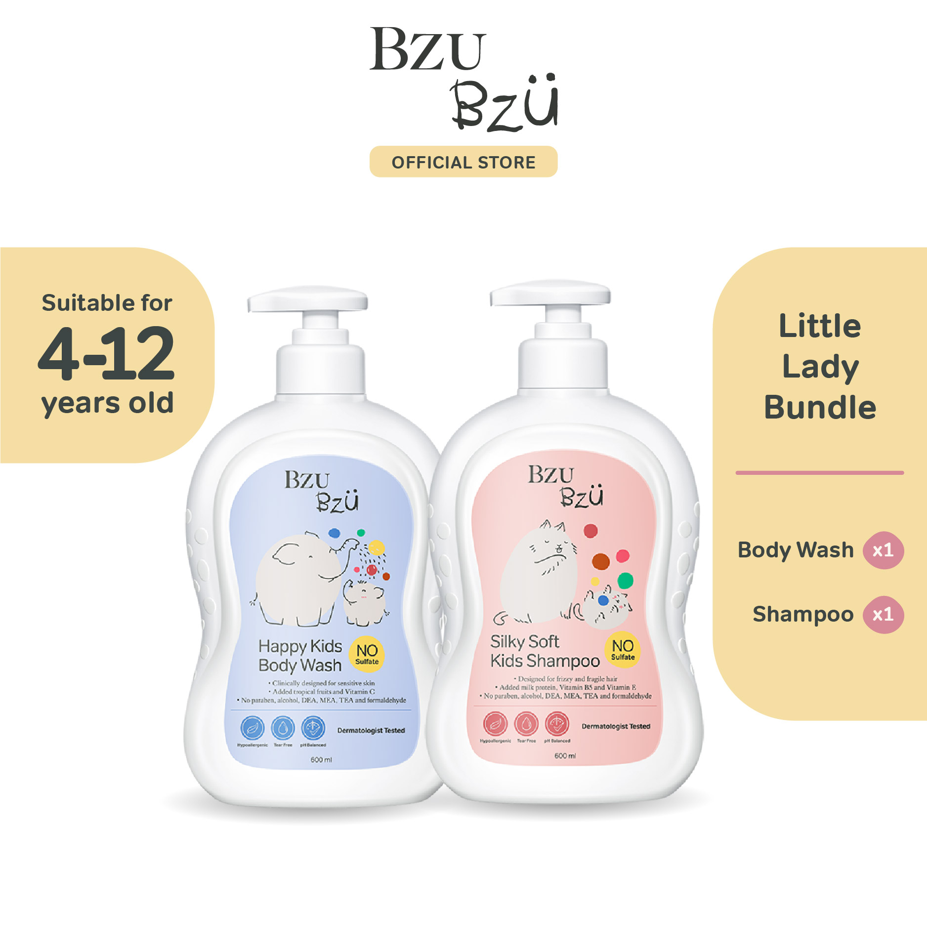 BZU BZU Little Lady Bundle (Silky Soft Kids Hair Shampoo + Body Wash)