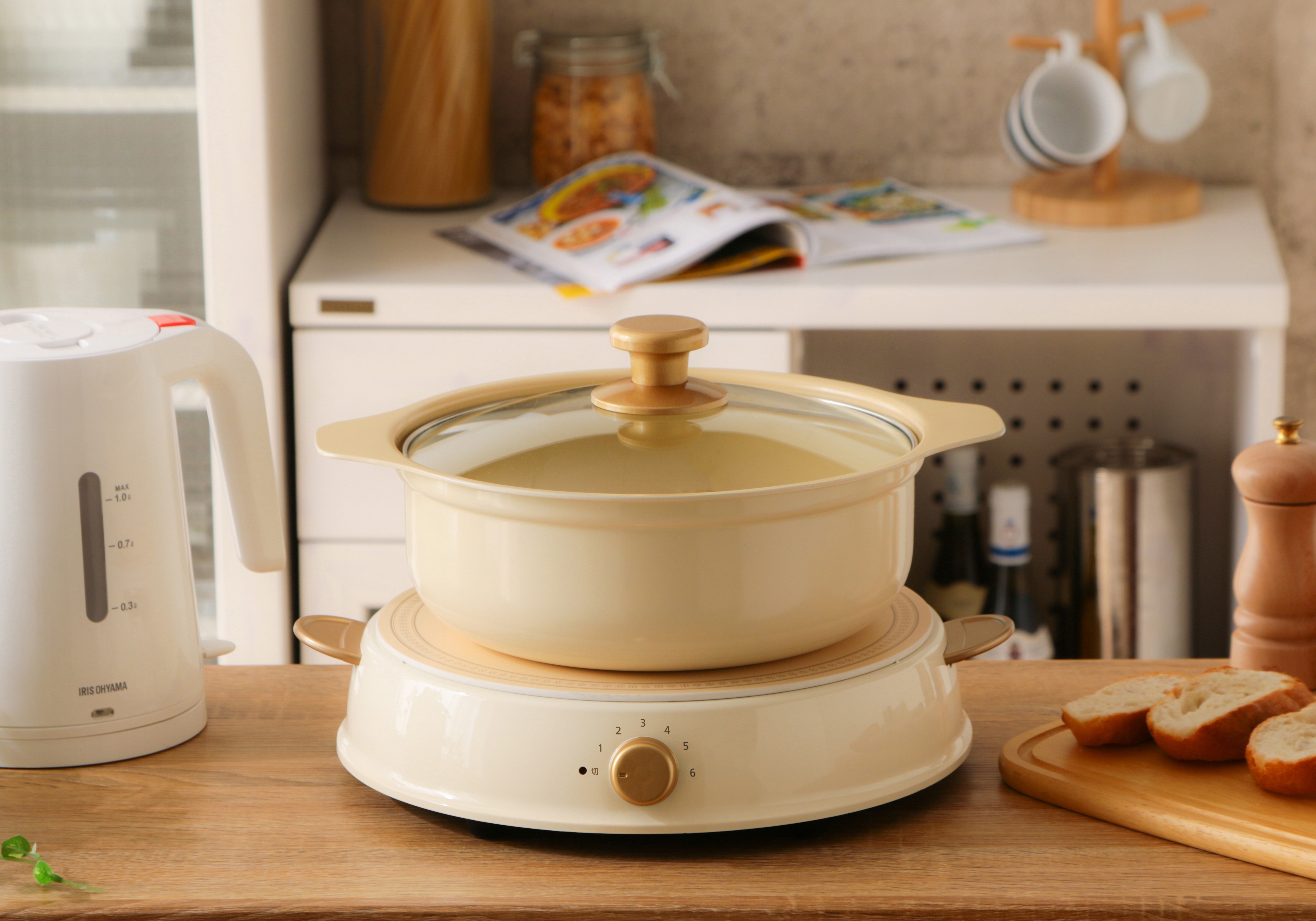 IRIS Ohyama Japan RICOPA Party IH Induction Cooker Ceramic Hot Pot Set, IHL-R14 Beige, IRIS Ohyama Cookware