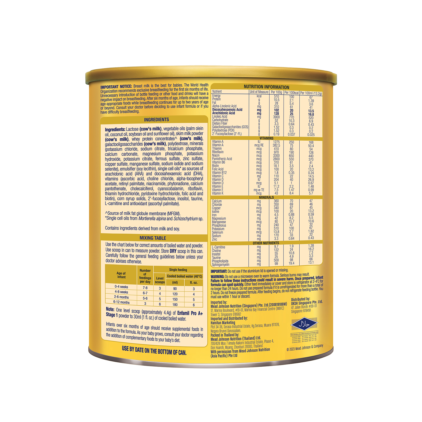 - With over 100 years experience in paediatric nutrition, Mead Johnson Nutrition has designed Enfamil A+ Stage 1. this is a patented formula in US, Europe, Malaysia, Singapore and Hong Kong.