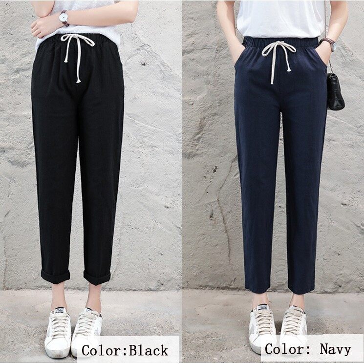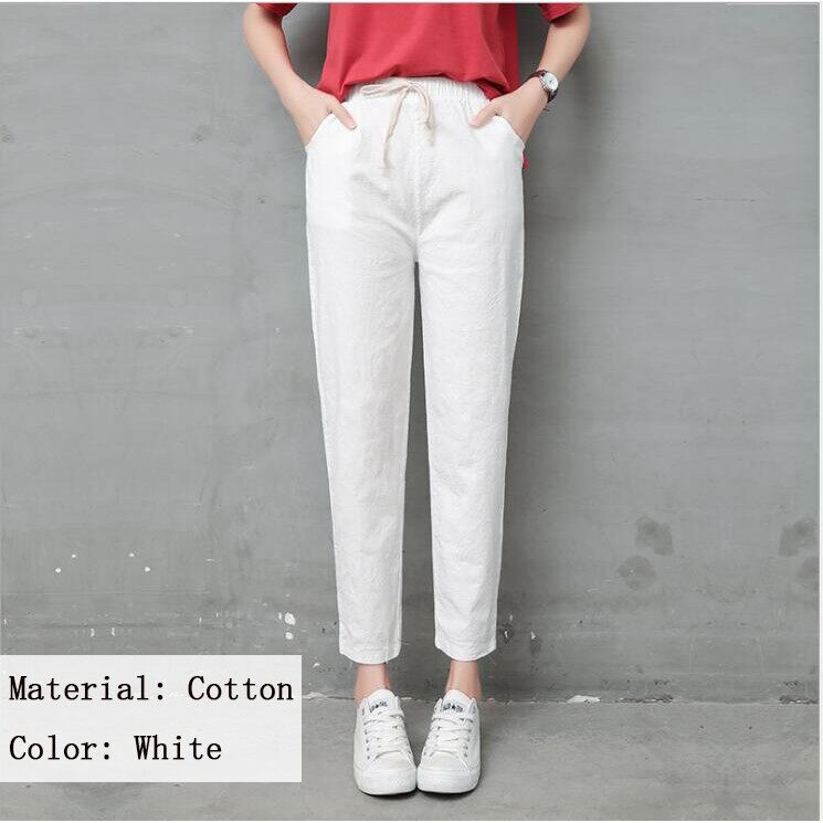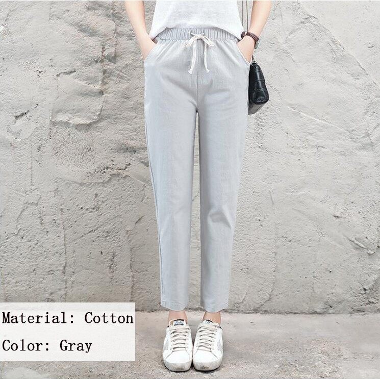 Women Trousers Female Cotton Loose Casual Pants Plus Size Seluar