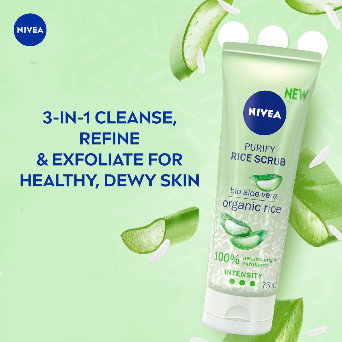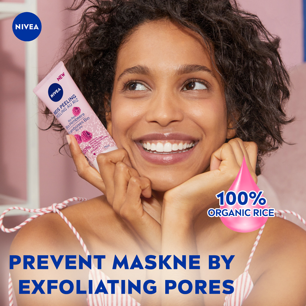 Nivea Face Care Glow Rice Scrub Organic Rice Bio Raspberry 75ml / Face Scrub / Natural Ingredients, Vegan, Rasberry, Dry Skin Sensitive Skin