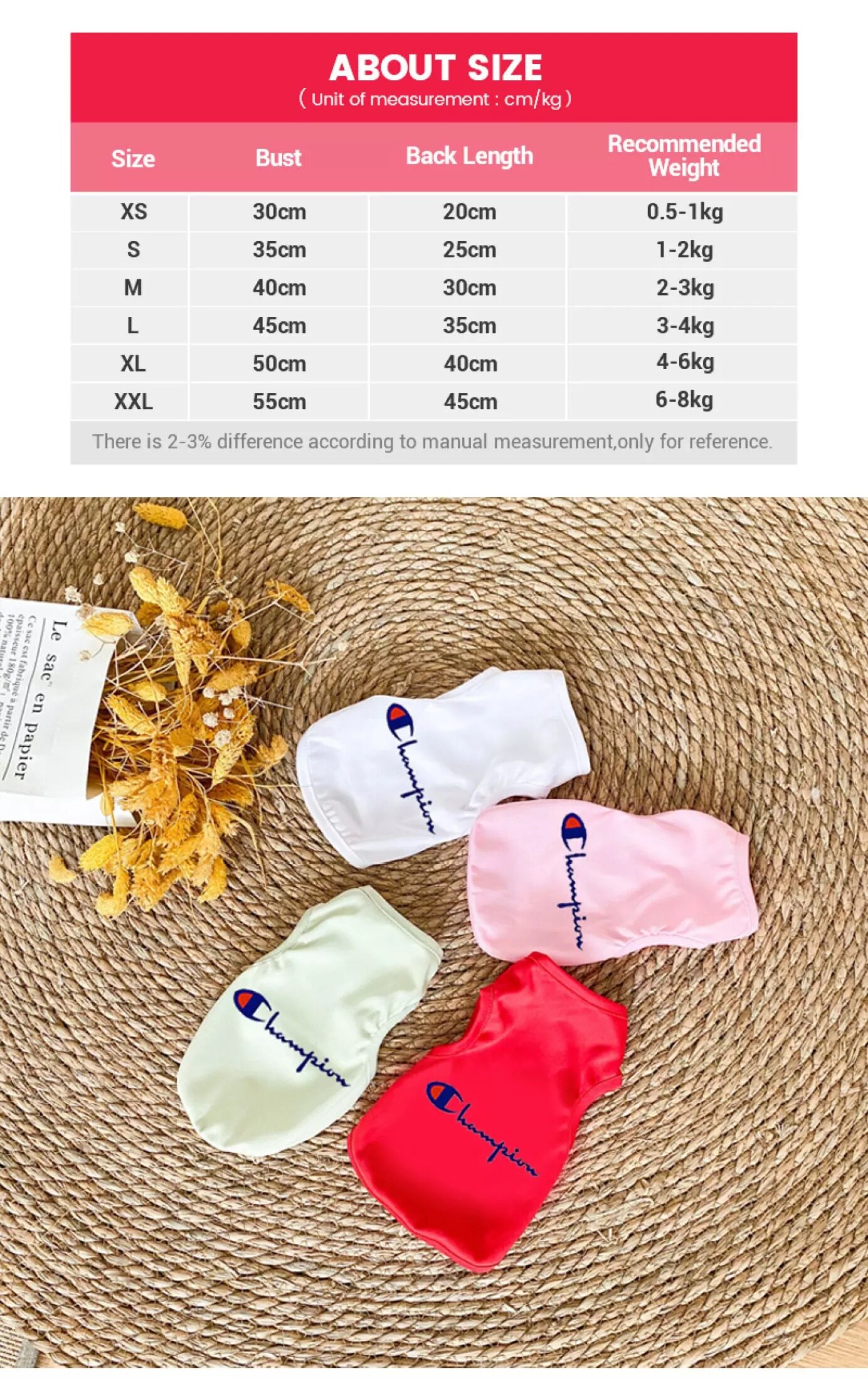 Lovinland Pet Summer Pet Clothes Dog T-shirt Champion Printed Dog Vest For Small Medium Dogs Accessories Pet Supplies Cat Vest Shirts