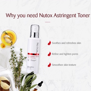 Nutox Astringent Toner’s pH balanced formulation instantly soothes and refreshes skin while providing 24-hour moisture to refine and tighten pores. Skin texture is smoothened, so your makeup is easier to apply and lasts longer too.