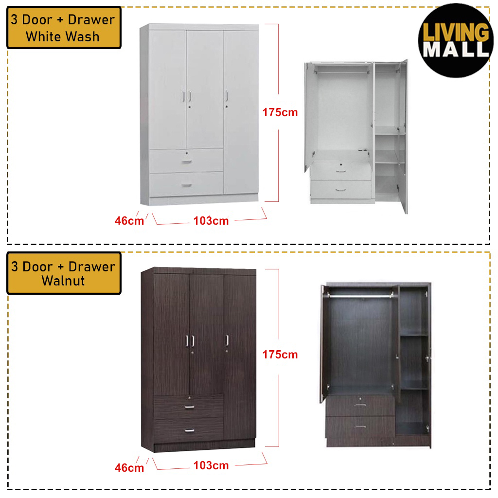 3 Door + Drawer White