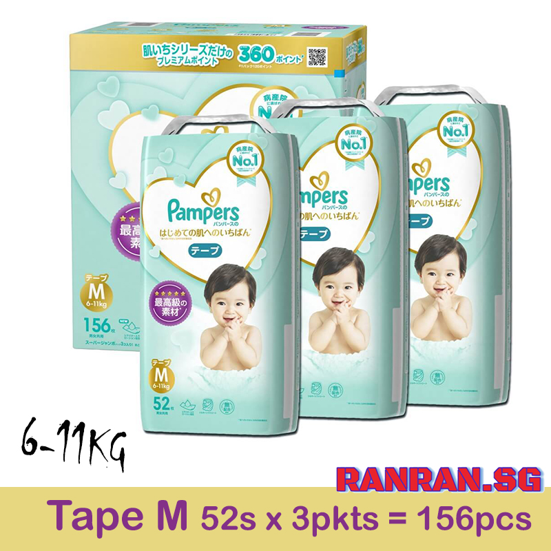 Pampers Premium Care tape diapers provides 5-stars skin protection to provide your baby's delicate skin with a soft comfortable wrap whilst protecting them from diaper rash.New improved Silky Softness keeps your baby's skin feeling soft and smooth. Pampers' new and improved Channel Technology distributes evenly for fast and even absorbency. Unique Lotion Sheet wraps baby's skin gently. Stretchy tape sides provide superior fit and comfort for your baby to move around comfortably.