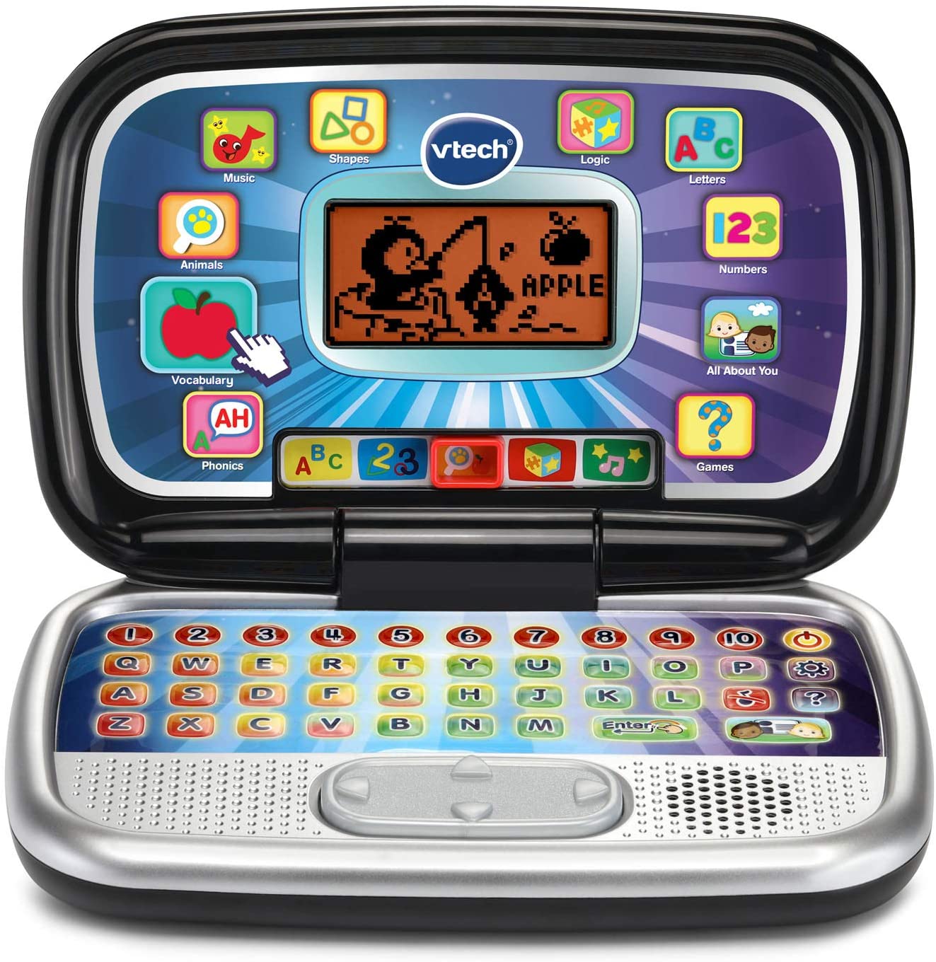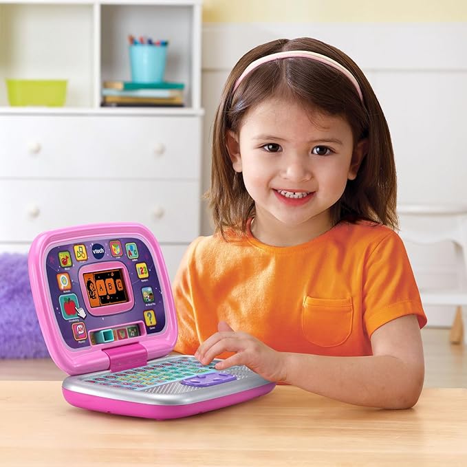 • Sleek, black toy laptop like Mom and Dad's has 30 learning activites with leveled learning. Personalize it with your child's name, age, avatar and more