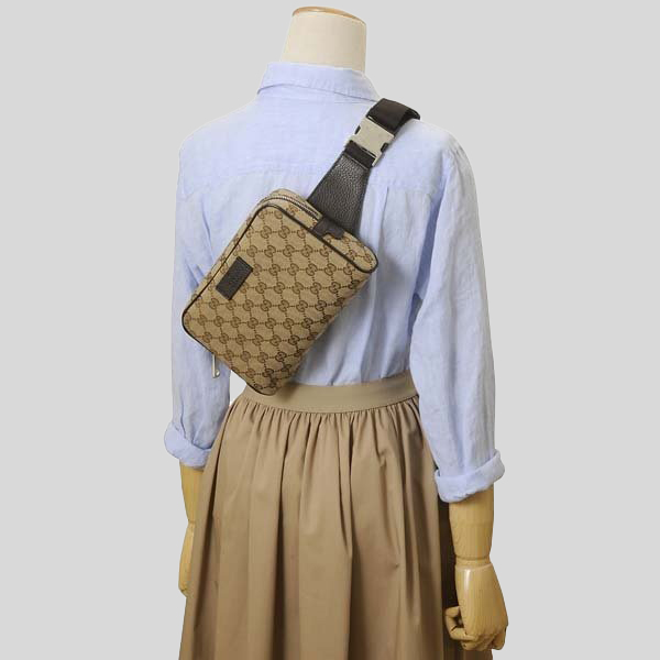 GUCCI Signature GG Canvas Unisex Waist Belt Bag Beige 449174