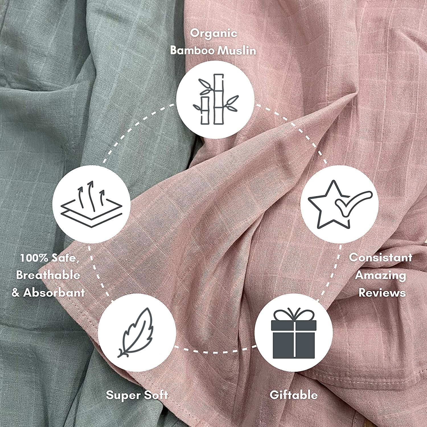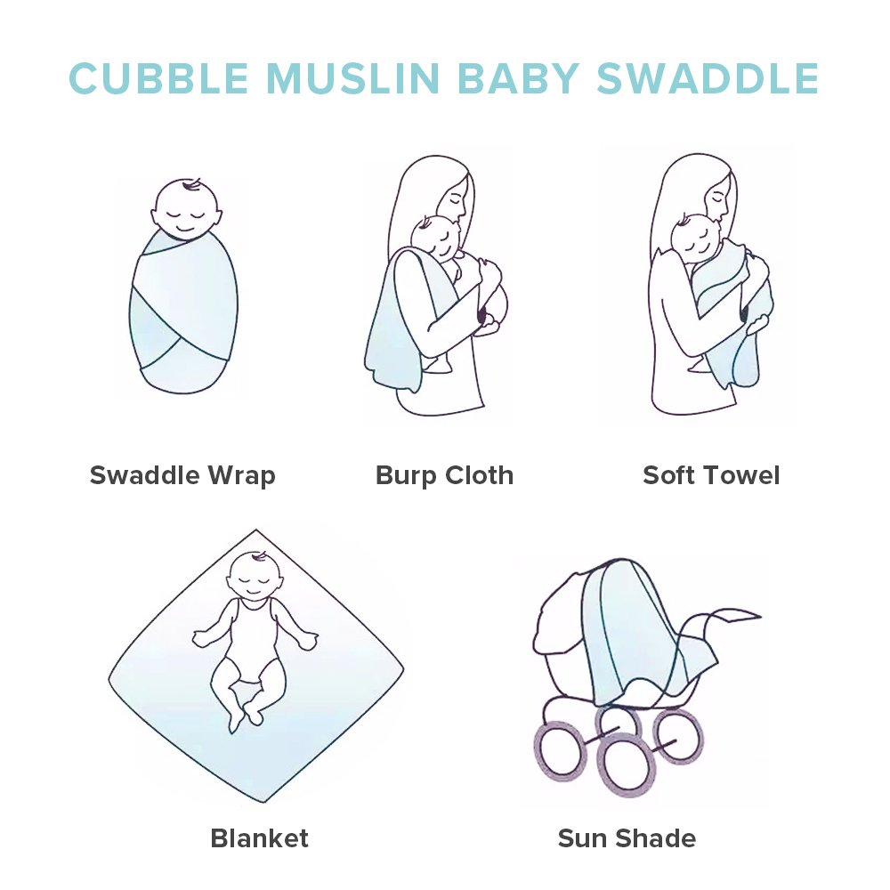 Cubble Bamboo Muslin Baby Swaddle Blanket (120x120cm) | Multiple Colors