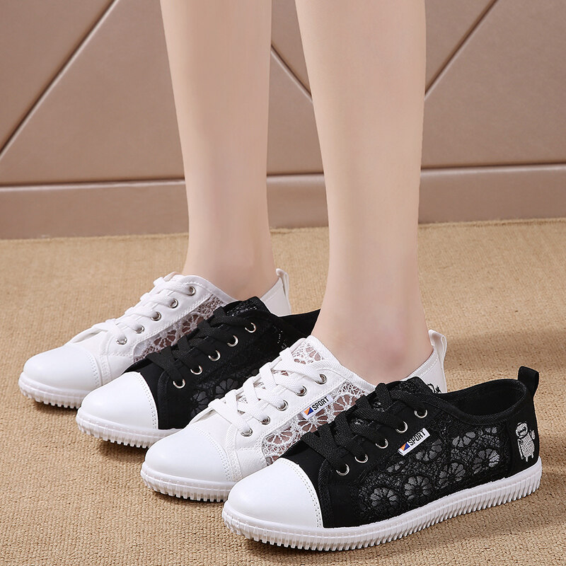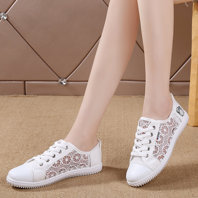 Women White Flat Shoes Korean Style Sneakers Plus Size 41 Lace Up Ladies Rubber Casual Women Shoes