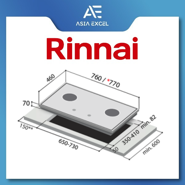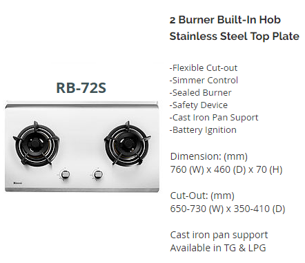 RINNAI RB-72S (RB72S) 2 BURNER HYPER FLAME STAINLESS STEEL BUILT-IN HOB