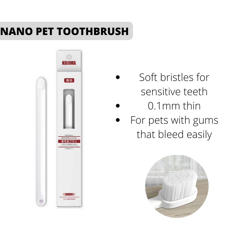 Kojima Nano Pet Toothbrush for Dogs / Cats has super soft bristles for sensitive teeth (0.10mm bristles). It is suitable for dogs with gums that bleed easily.