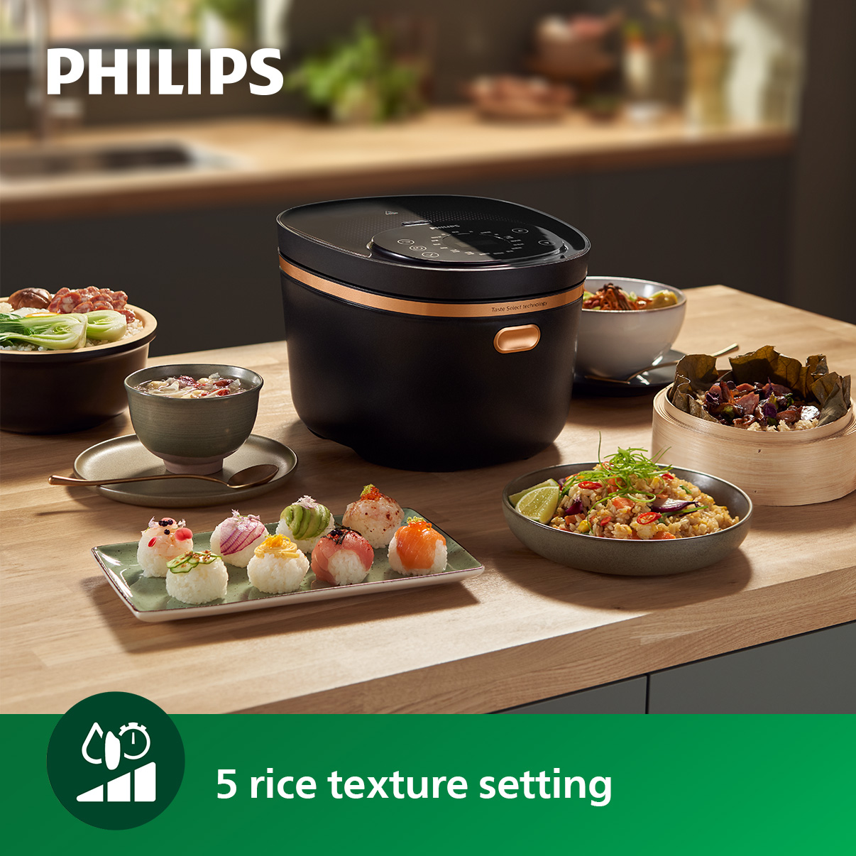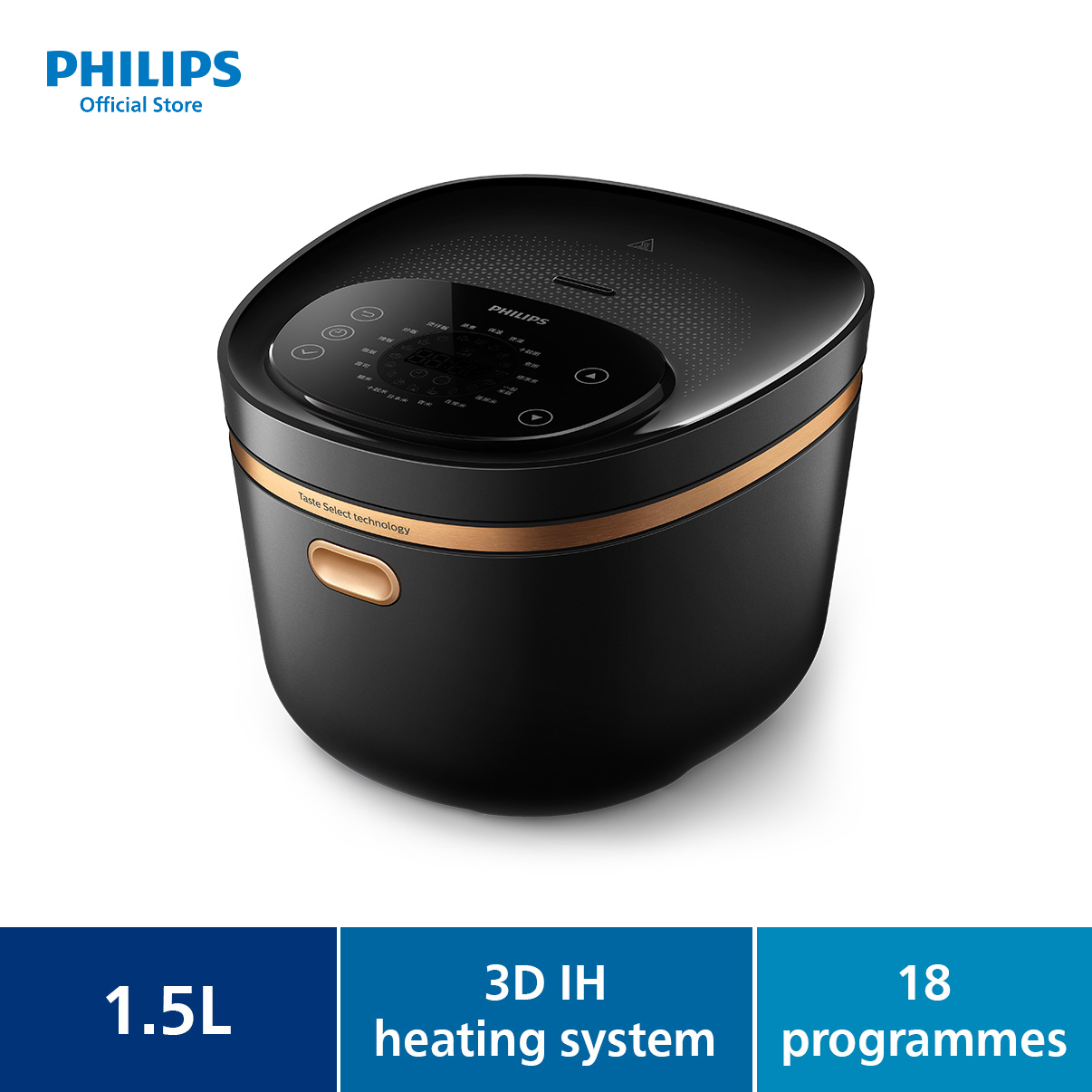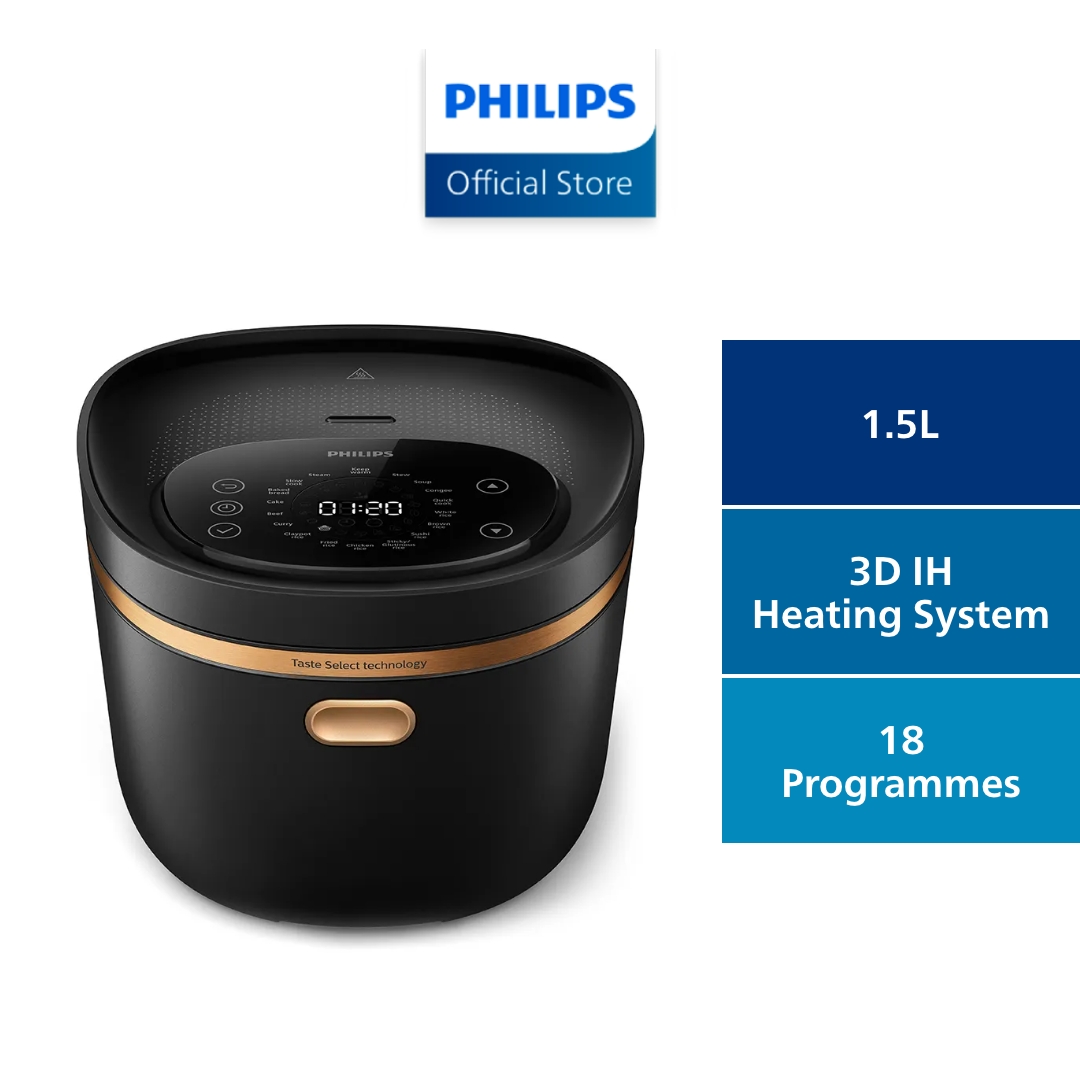 PHILIPS Digital Rice Cooker 5000 Series 1.5L - HD4539/62, 18 programmes, 8-layer maifanshi coating, LED Display