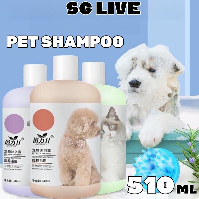 [SG Stock] Pet Shampoo 510ml Dog Cat Anti-Bacteria Anti-Itch Anti-Flea Mites Whitening Brown Fur