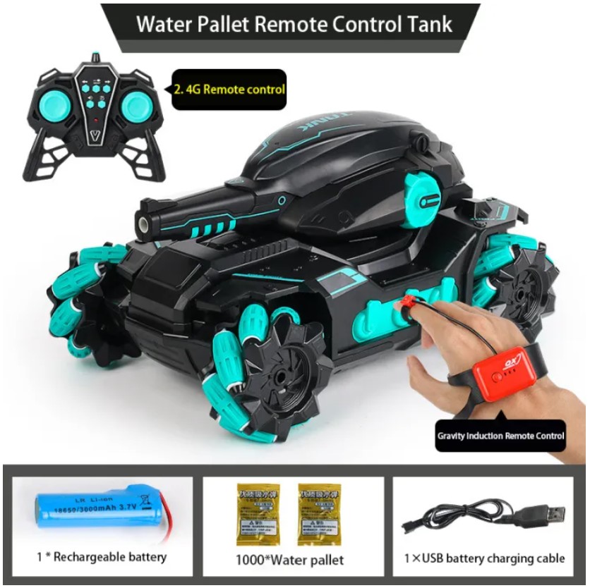 Hand Gesture & Remote Control Battle Tank Water Bullet Armored 4WD Car 360° Stunt Rotation with Light and Sound (Singapore Seller)
