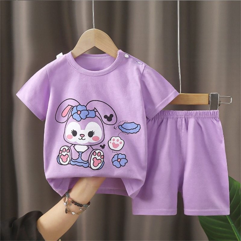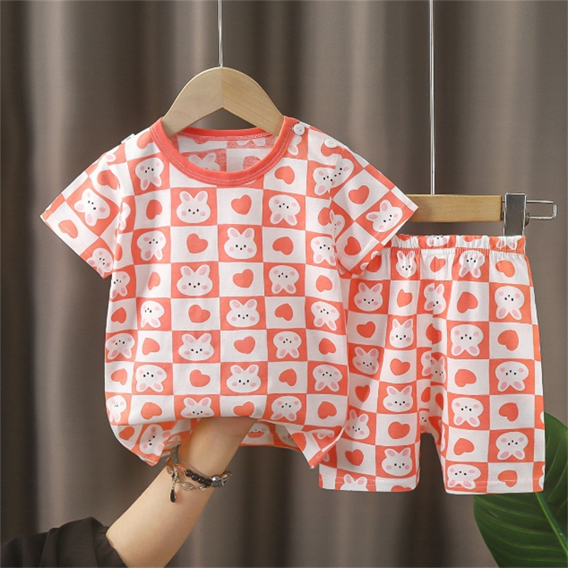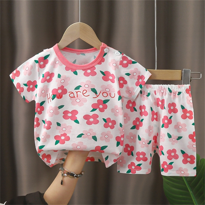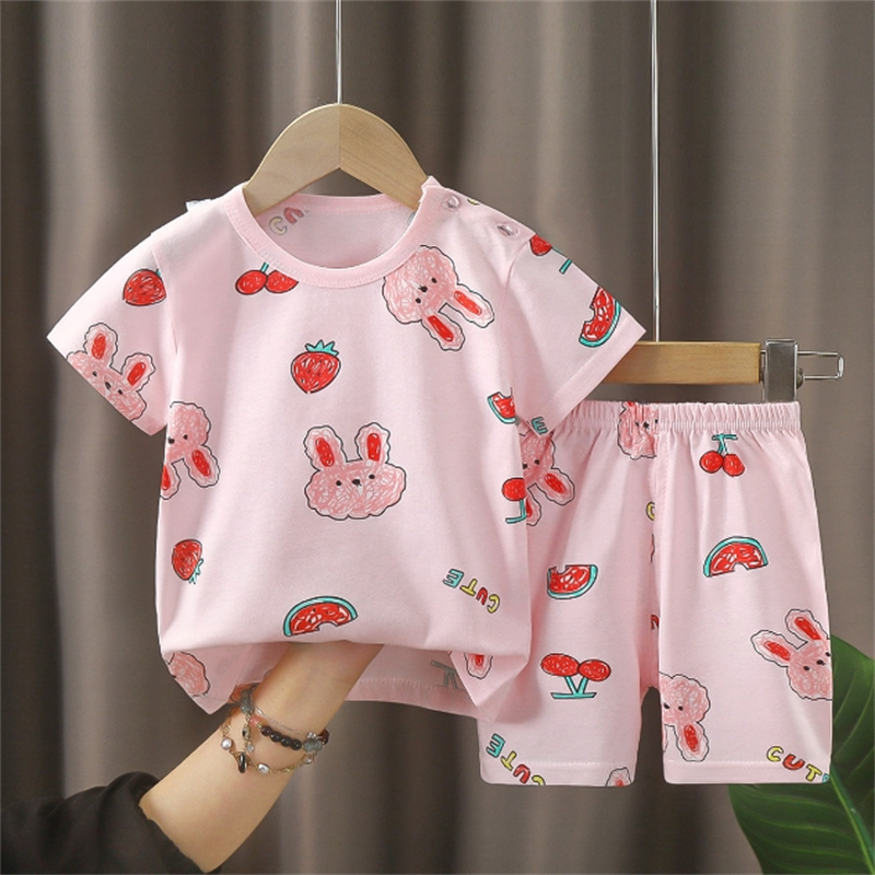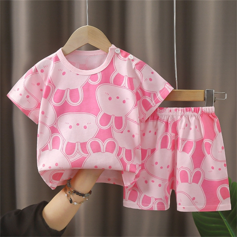 Summer New Children Pink Cartoon Printing Short Sleeves Shorts Clothing Sets Toddler Girls Baby Kids Cotton Soft Comfortable T-Shirts Leisure Clothes Suits For 0-5 Years