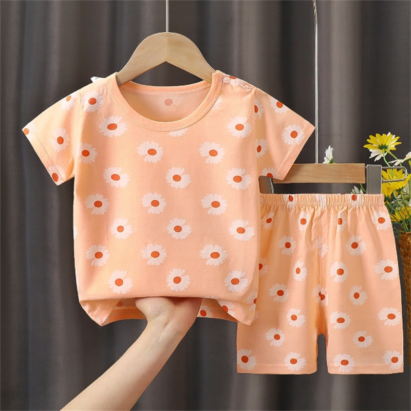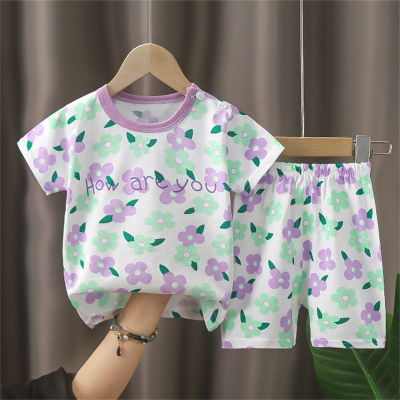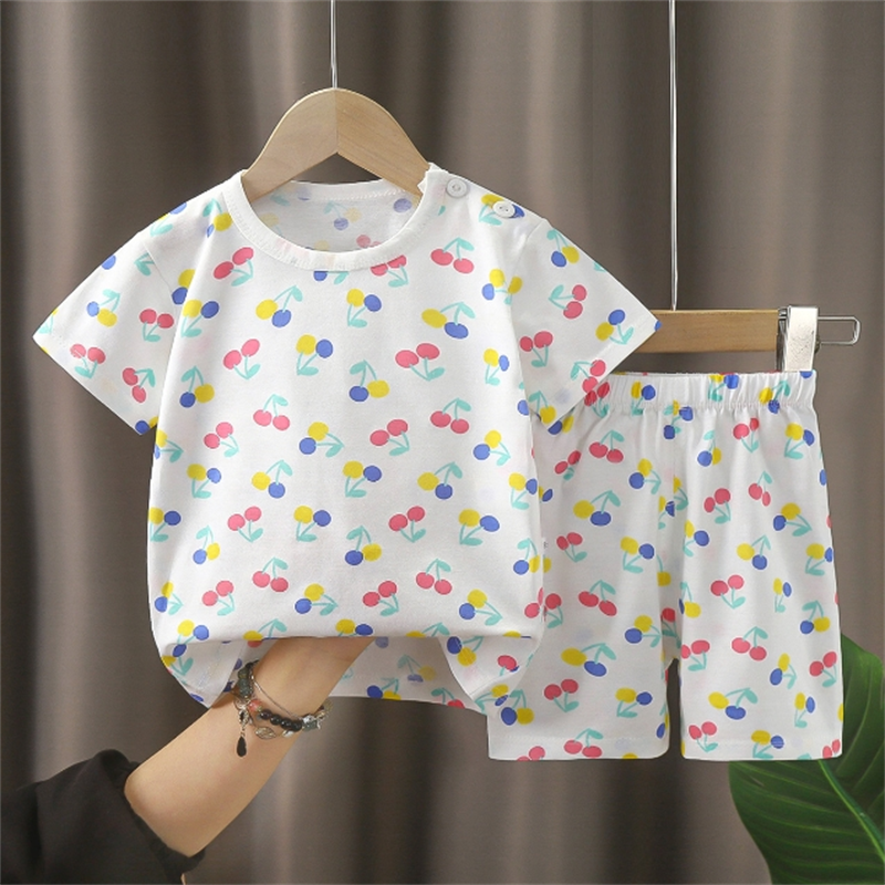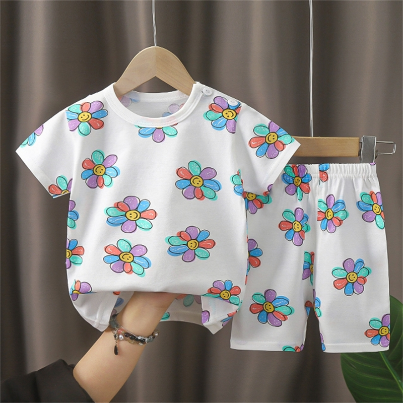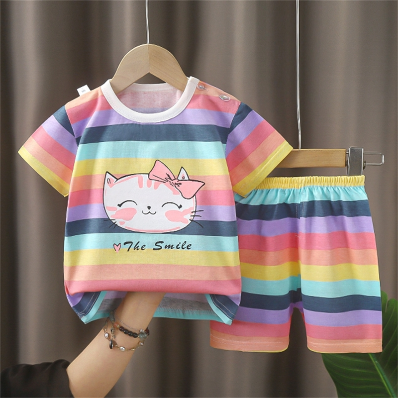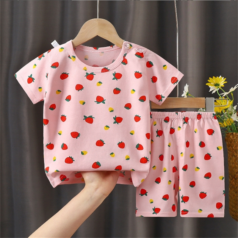 Summer New Children Pink Cartoon Printing Short Sleeves Shorts Clothing Sets Toddler Girls Baby Kids Cotton Soft Comfortable T-Shirts Leisure Clothes Suits For 0-5 Years