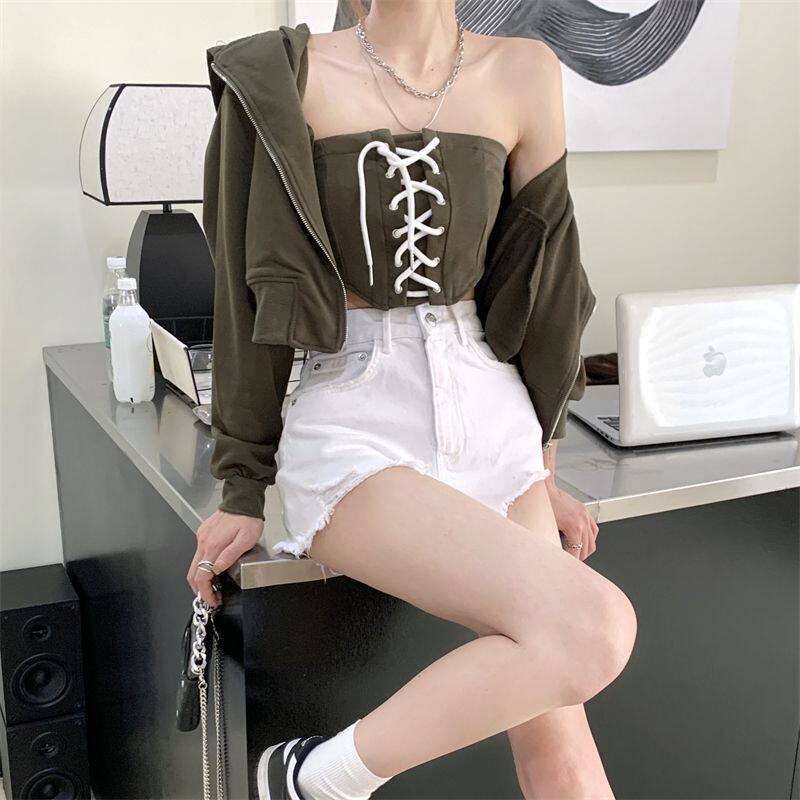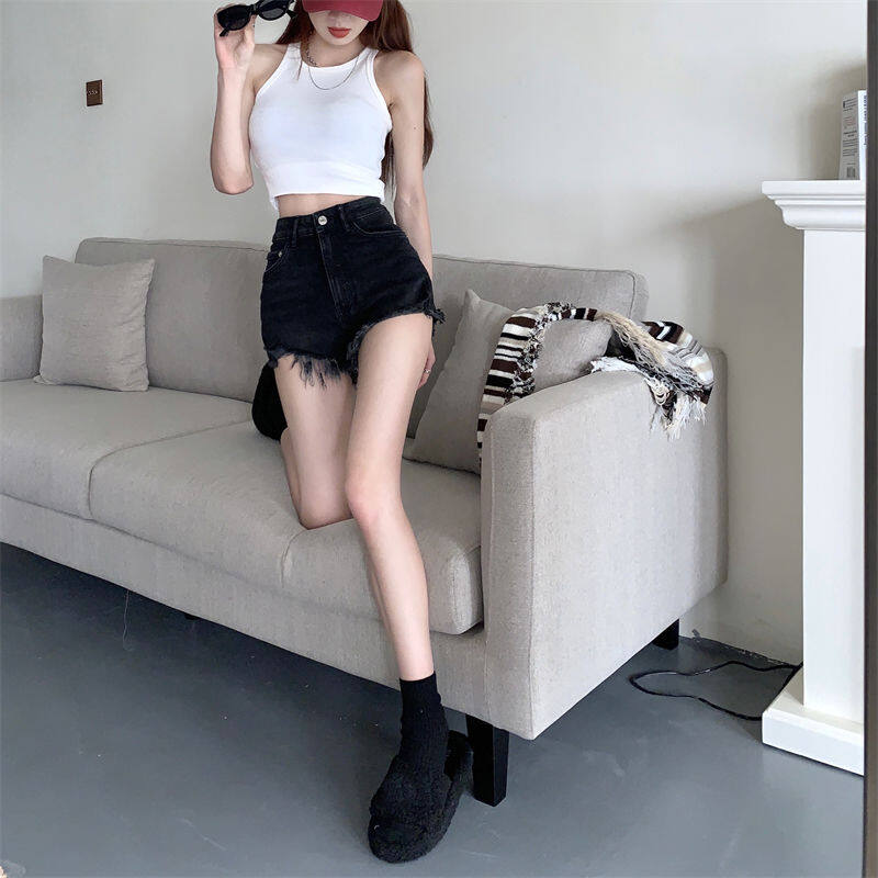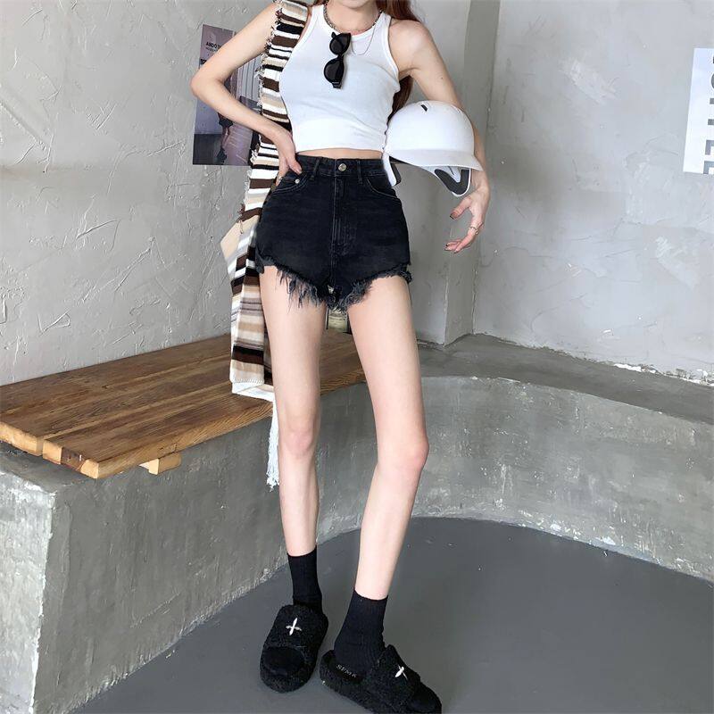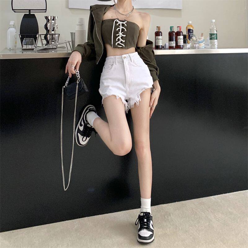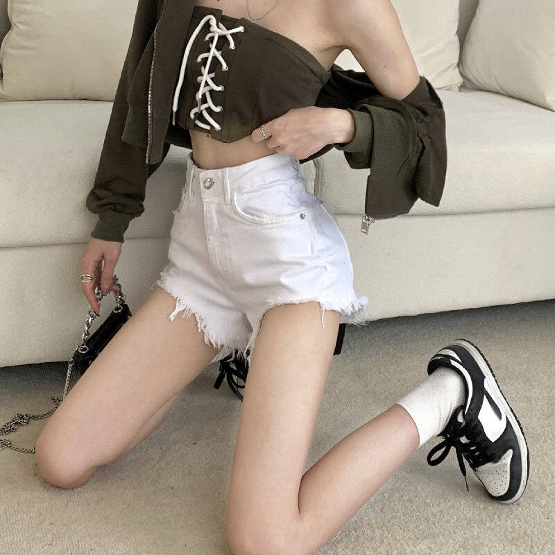 【S4Queen】Denim Shorts Women's Summer 2023 New Small Person Ripped Holes Show Thin High Waist Wide Leg Spice Girl Hot Pants White