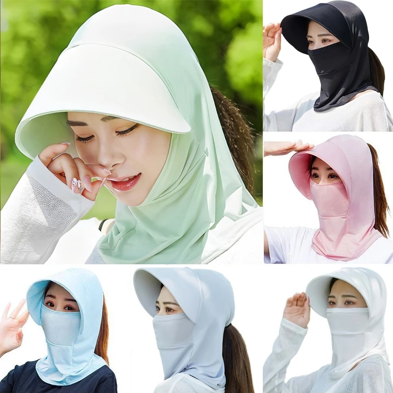 2023 Summer Ice Silk Visor Sunscreen Foldable Sunshade Cap Neck Wide Brim Men Women Outdoors Fishing Travel Bucket Hats Fisherman Hat