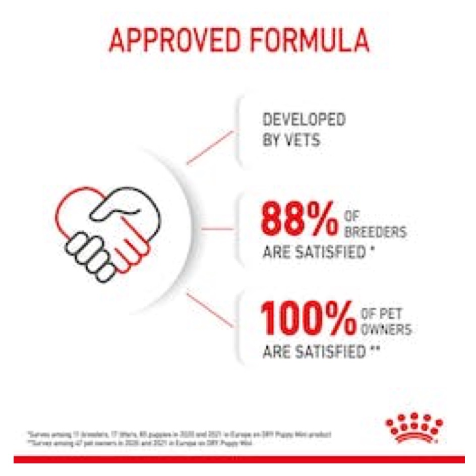 Complete feed for dogs - For small breed puppies (adult weight up to 10 kg) - Up to 10 months. ROYAL CANIN® Mini Puppy is specially formulated to support the nutritional needs of small breed puppies. This formula is suitable for 2 to 10-month-old puppies that should reach an adult weight of 4-10 kg.