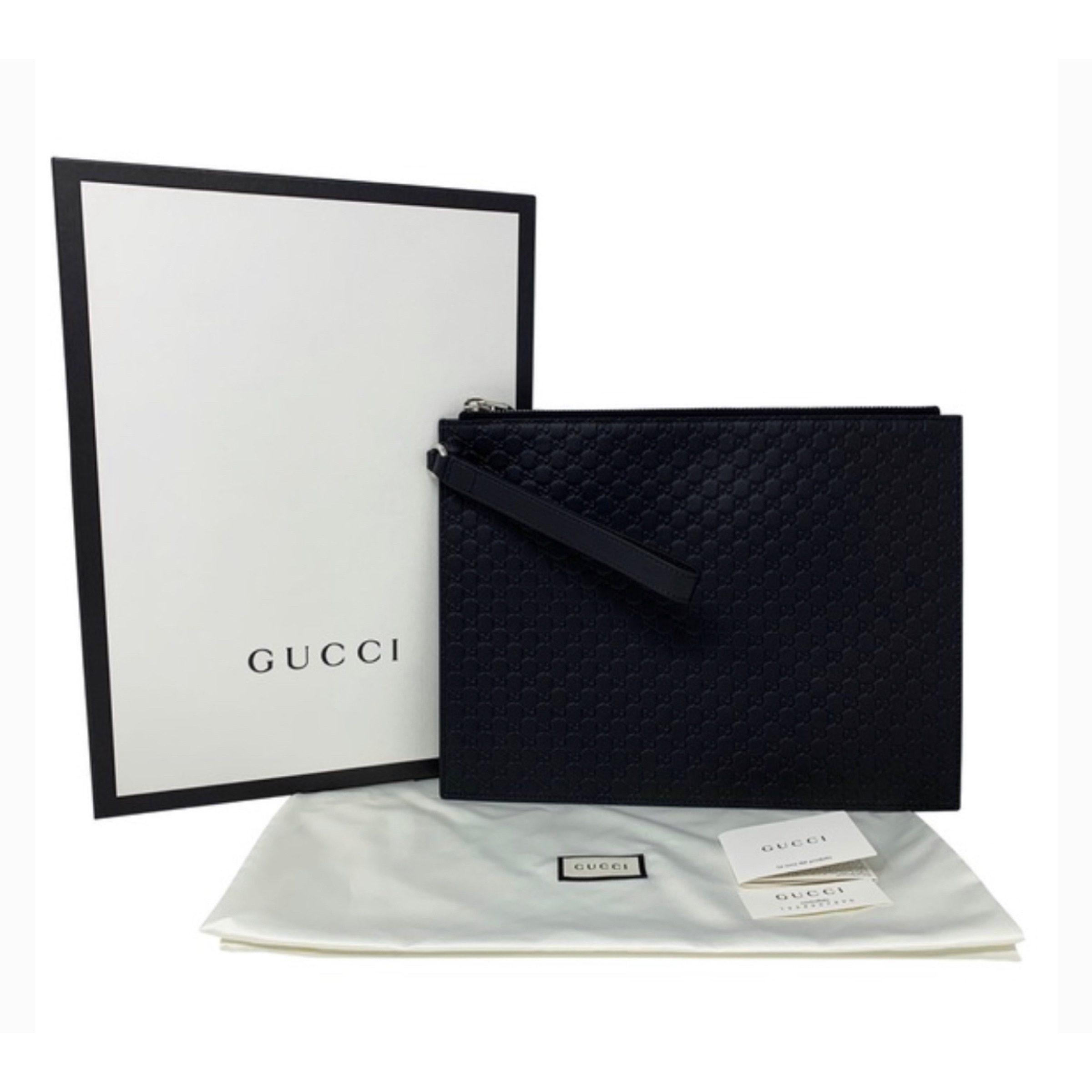 Gucci Black Micro GG Leather Clutch Wristlet 544477 BMJ1N 1000