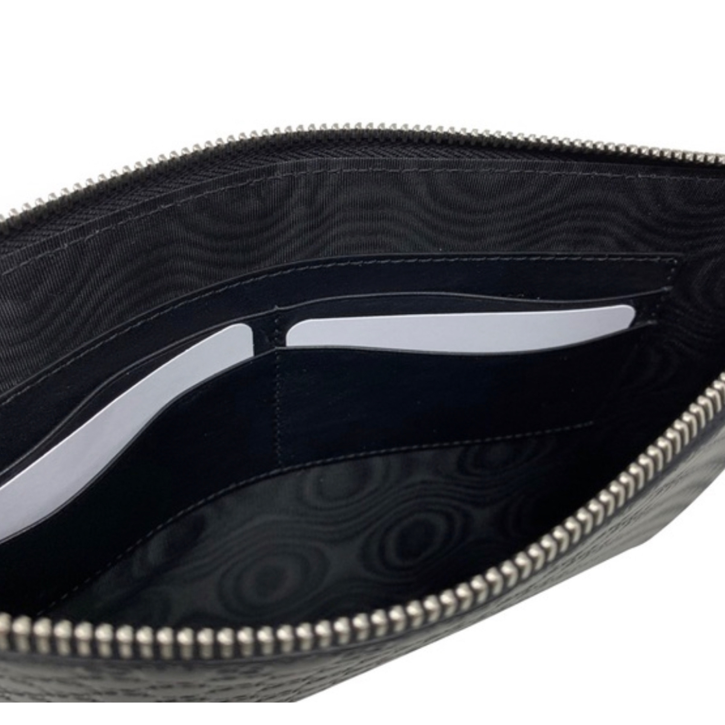 DETAILS Brand: Gucci Condition: Brand new Gender: Unisex Category: Clutch Color: Black Material: Leather Gucci monogram GG guccissima details Silver-tone hardware Top zip closure 1 main compartment 4 interior card slots Made in Italy Includes: dust bag and brand authenticity cards