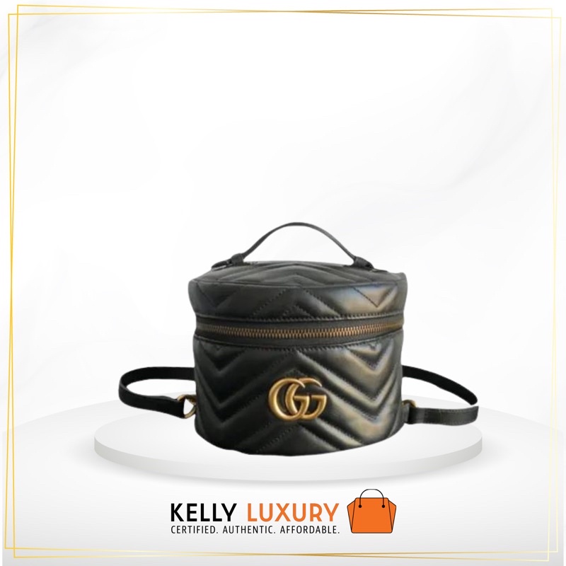 [preorder ] Gucci Marmont vanity black gold Backpack [Evoucher] ships in 40 days