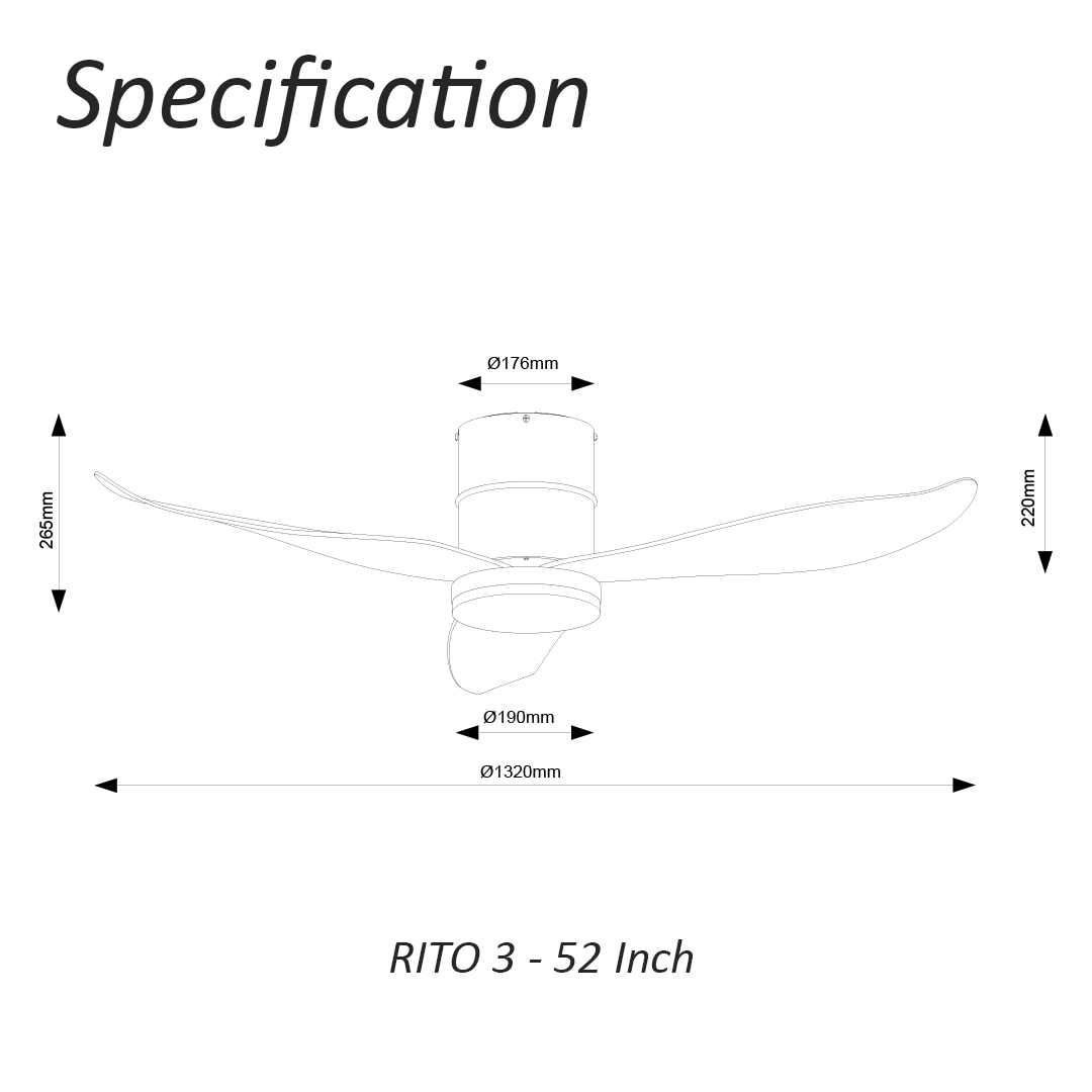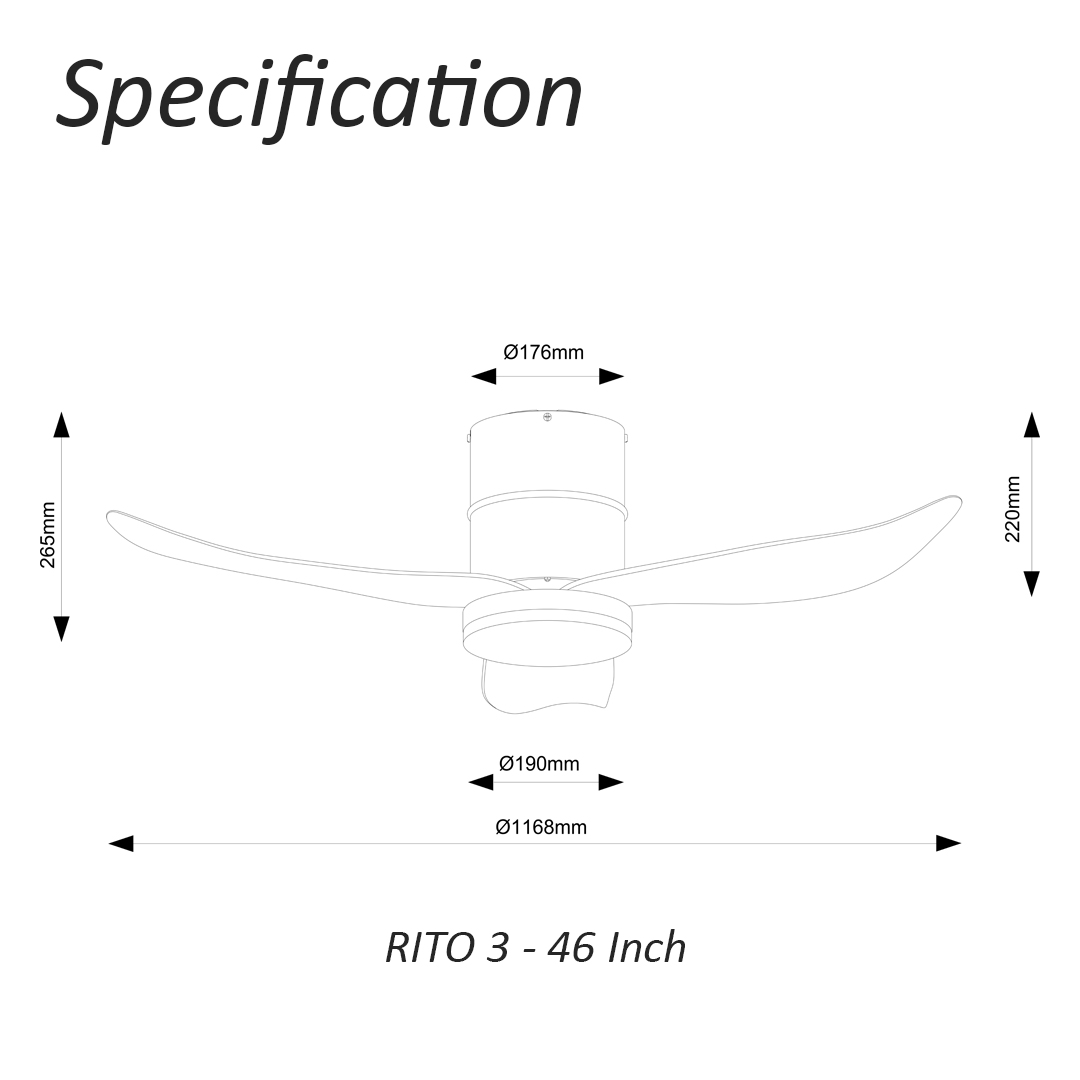 - Rito 3 available in 46 or 52 inch