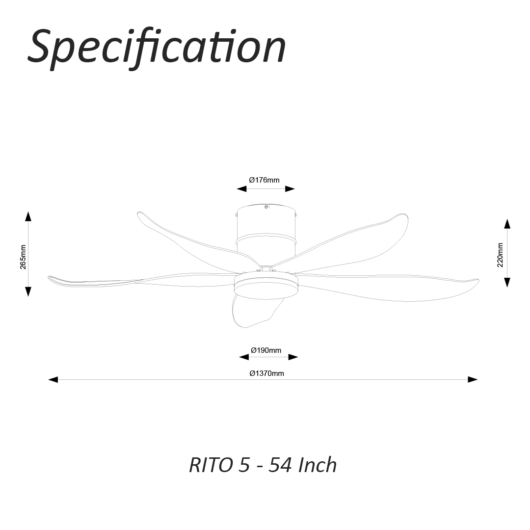 - Rito 5 available in 48 or 54 inch