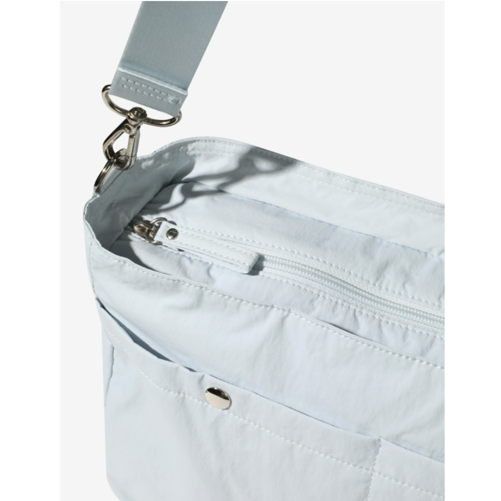 It is a horizontal crossbody bag made of light and durable lightweight nylon fabric.