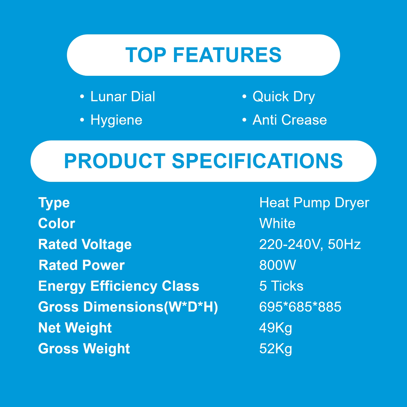 • Drying Capacity: 8kg