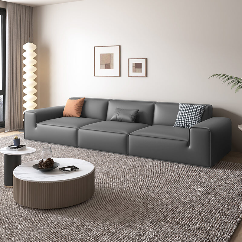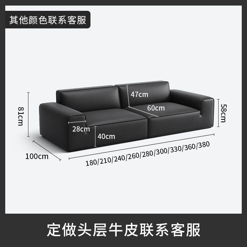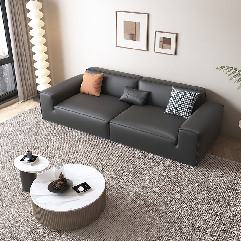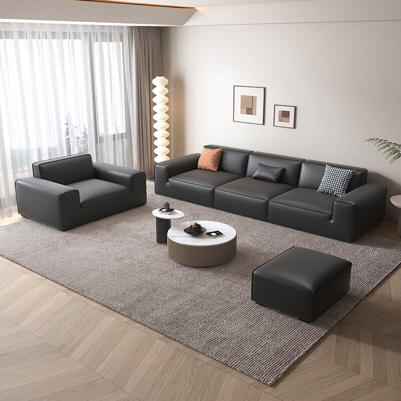 Baxter Big Black Cow Black Tofu Block Leather Sofa Italian Minimalist Accessible Luxury Small Apartment Minimalist Modern Sofa