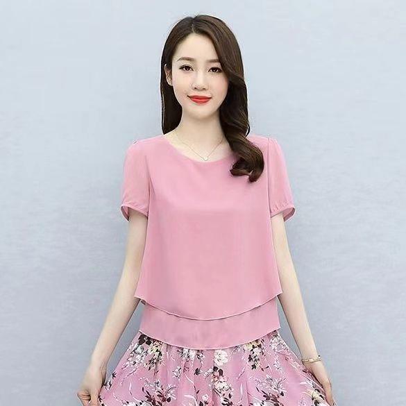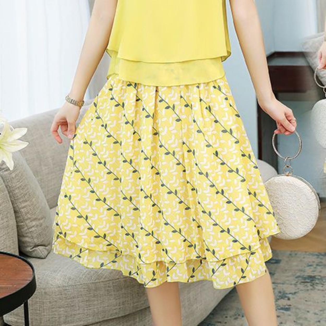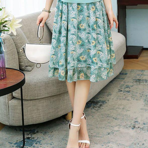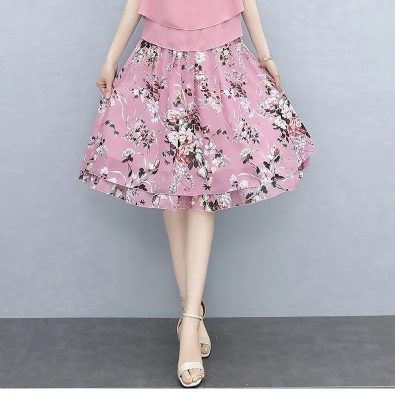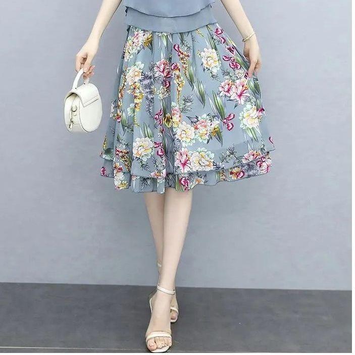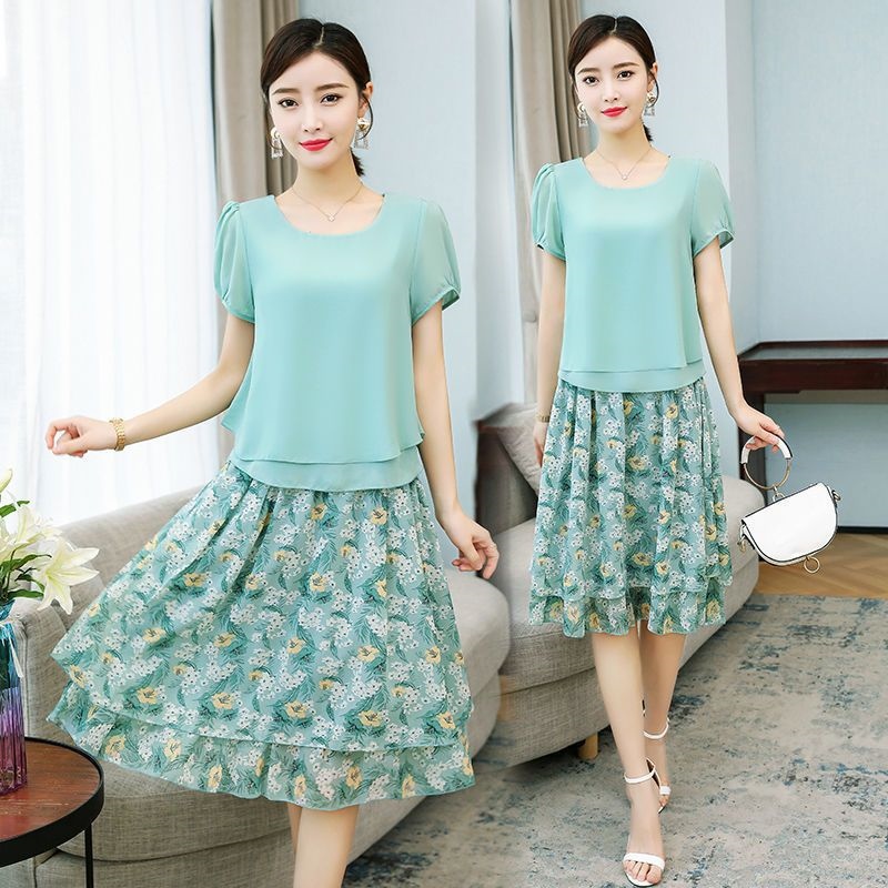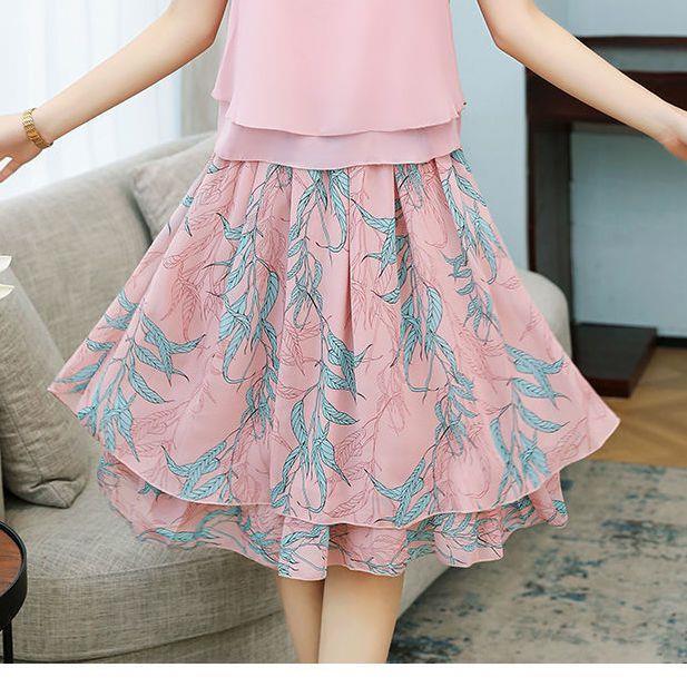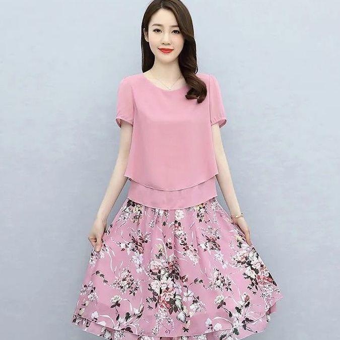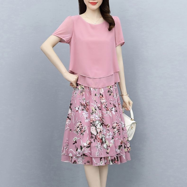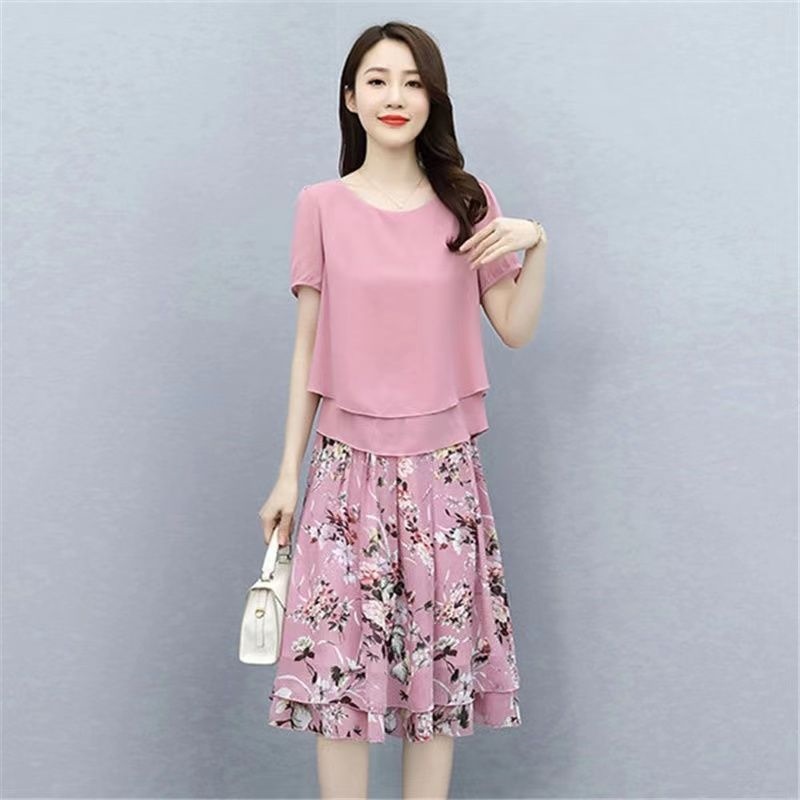 pdd8.5 Chiffon fashion suit 2023 new summer mid-length printed dress plus size casual two-piece floral dress