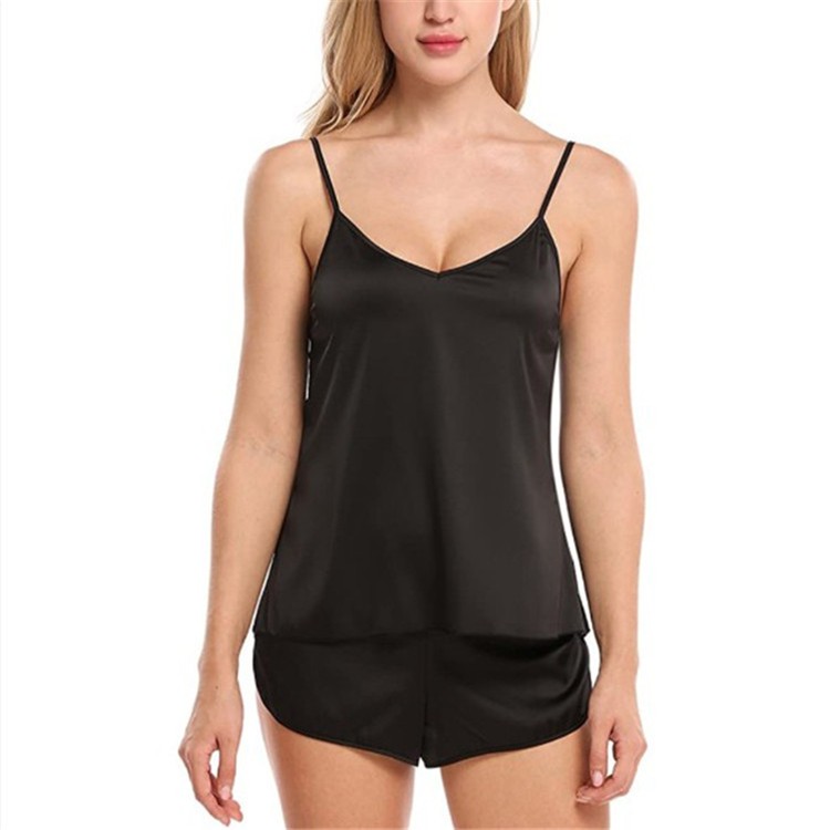 Women V Neck Satin pajama set Sleepwear Slik Sling Nightwear vest sleeveless shorts loungewear
