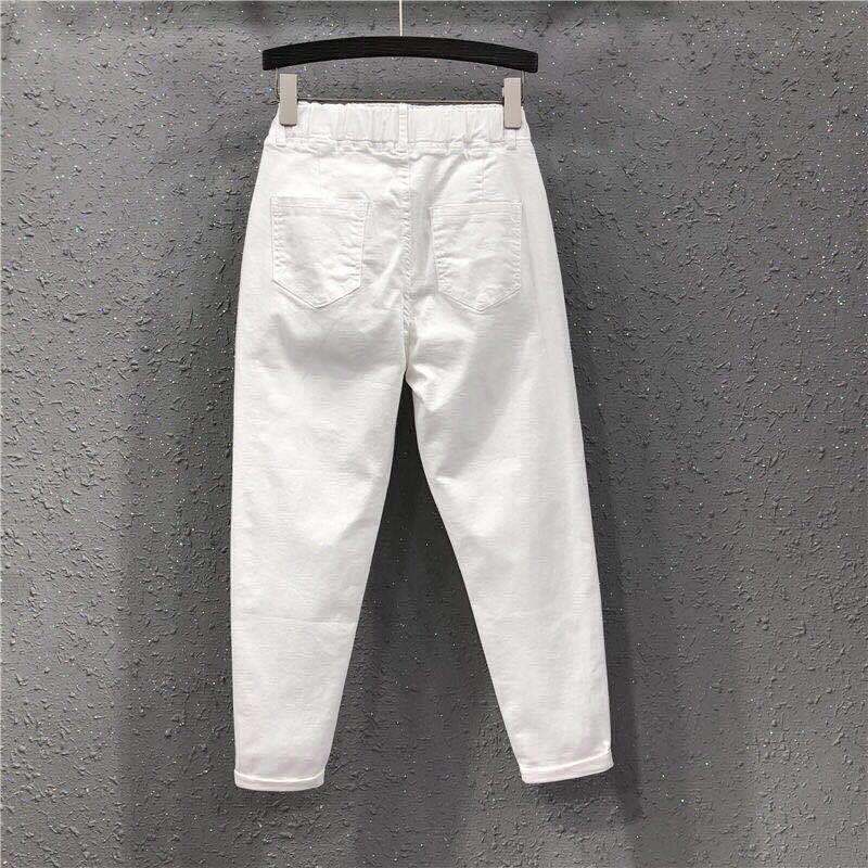 202411 New Fc202 Spring 4 Autumn High White Elastic Waist Denim Women's K-style Loose Thin Cropped Casual Pants