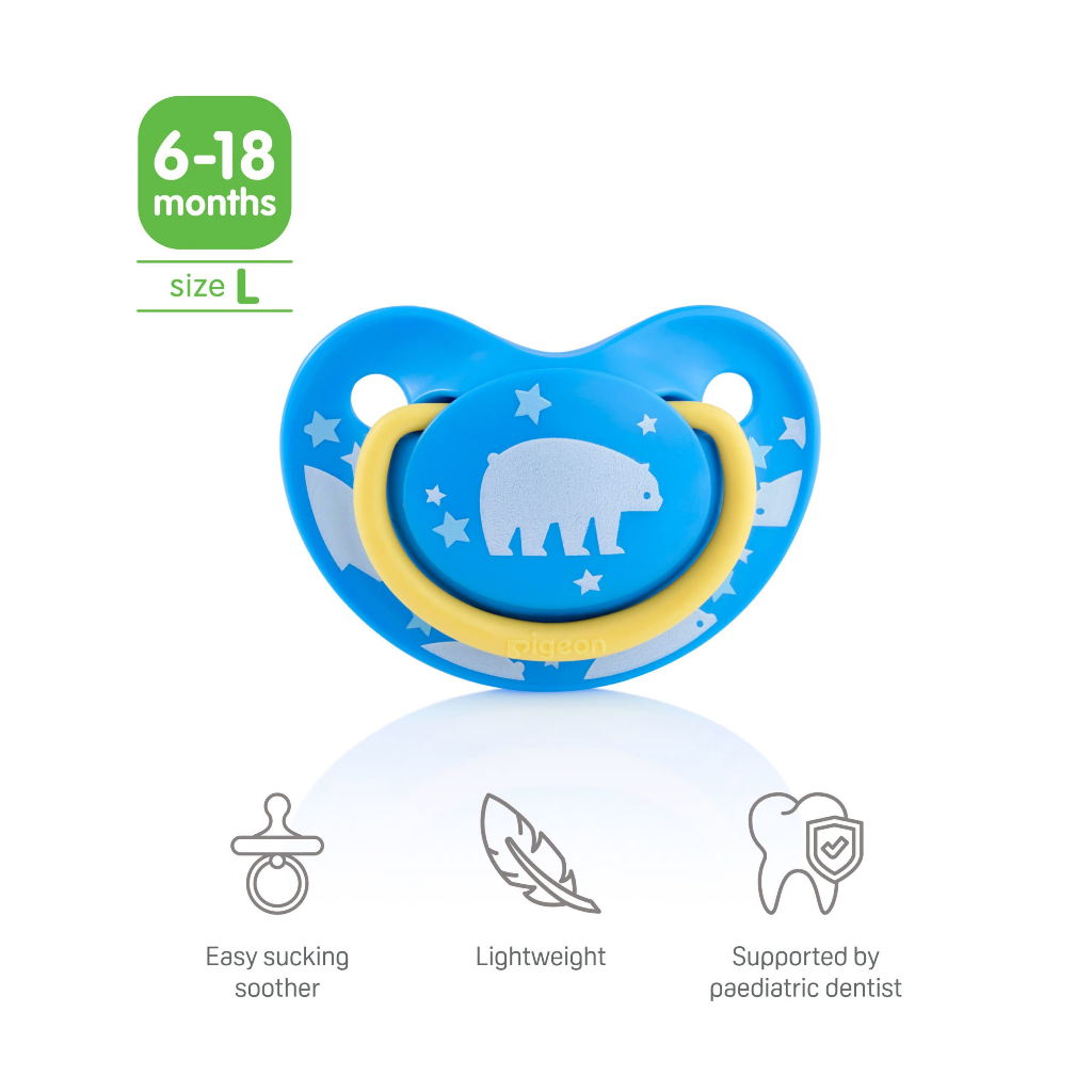 • Different Sizes for Every Stage: The Pigeon Soother FunFriends come in three size variations – Small (S), Medium (M), and Large (L). Choose the perfect size to suit your baby's age and comfort.