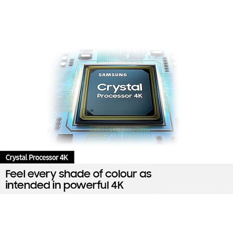 Specifications Product Type : LED Series : 7 Display Screen Size : 50" Resolution : 3,840 x 2,160 Screen Curvature : N/A Video Picture Engine : Crystal Processor 4K Adaptive Picture : N/A PQI (Picture Quality Index) : 000 AI Streaming : N/A AI Upscale : N/A HDR (High Dynamic Range) : HDR HDR 10+ : Support HLG (Hybrid Log Gamma) : Yes Contrast : Mega Contrast Viewing Angle : N/A Colour : Pur Color Brightness/Colour Detection : Brightness Detection Micro Dimming : UHD Dimming Auto Depth Enhancer : N/A Contrast Enhancer : Yes Auto Motion Plus : Yes Film Mode : Yes Natural Mode Support : Yes Filmmaker Mode (FMM) : Yes Audio Dolby Digital Plus : Yes Dolby 5.1 Decoder : N/A Active Voice Amplifier : N/A Adaptive Sound : Adaptive Sound Object Tracking Sound : N/A Q-Symphony : Q-Symphony Audio Pre-selection Descriptor : N/A Hole Array Speaker : N/A Sound Output (RMS) c: 20W Speaker Type : 2CH Woofer : N/A Multiroom Link : Yes Bluetooth Audio : Yes Smart Service Samsung SMART TV : Smart Operating System : Tizen Dimension Package Size (WxHxD) : 1264 x 780 x 150 mm Set Size with Stand (WxHxD) : 1116.8 x 719.1 x 250.2 mm Set Size without Stand (WxHxD) : 1116.8 x 644.2 x 59.9 mm Stand (Basic) (WxD) : 1009.8 x 250.2 mm Stand (Minimum) (WxD) : N/A Weight Package Weight : 16 kg Set Weight with Stand : 11.6 kg Set Weight without Stand : 11.4 kg