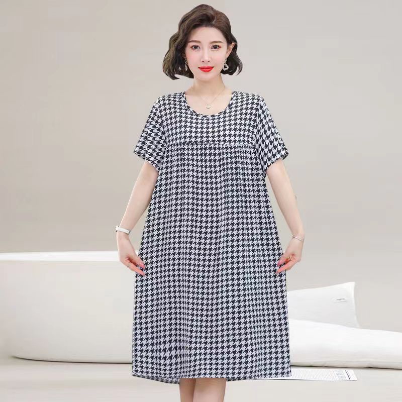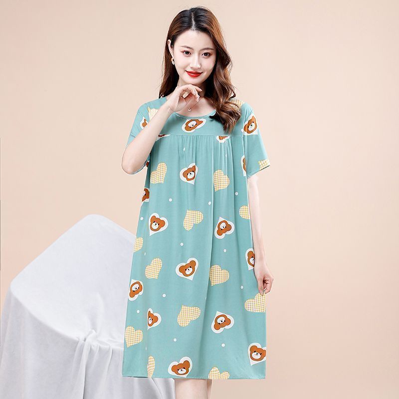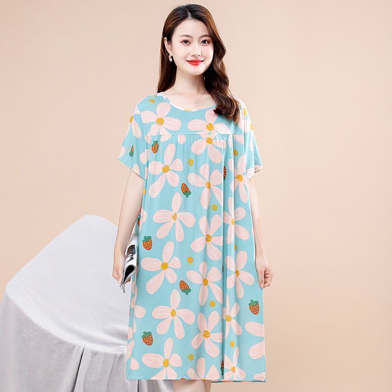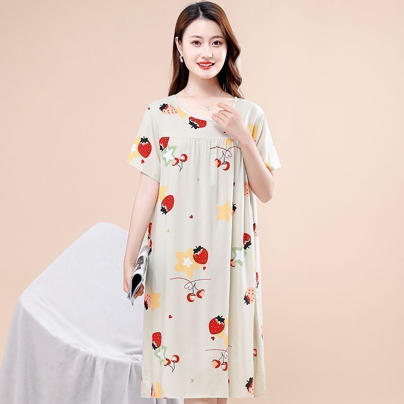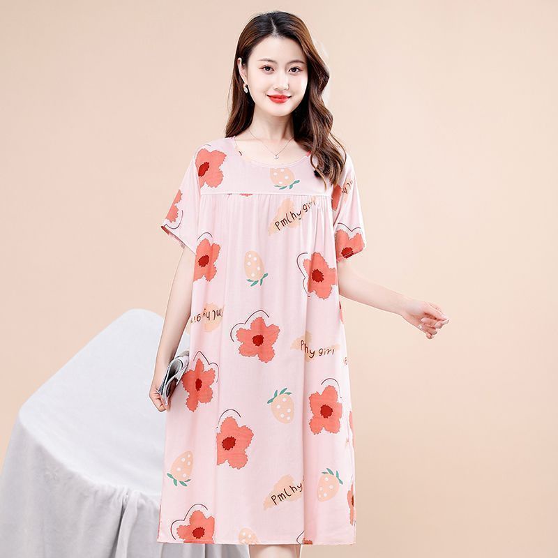 Middle-aged Elderly Nightdress Women New Style Cotton Silk Mother Western Style Mid-Length Pajamas Elderly Large