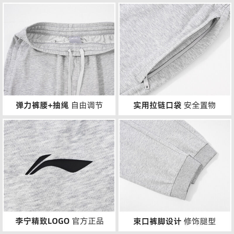 Li Ning Sports Pants Spring & Fall Sweatpants Women Fleece-lined Thicken Ankle-Tied Gray Trousers Women Autumn and Winter Loose Casual