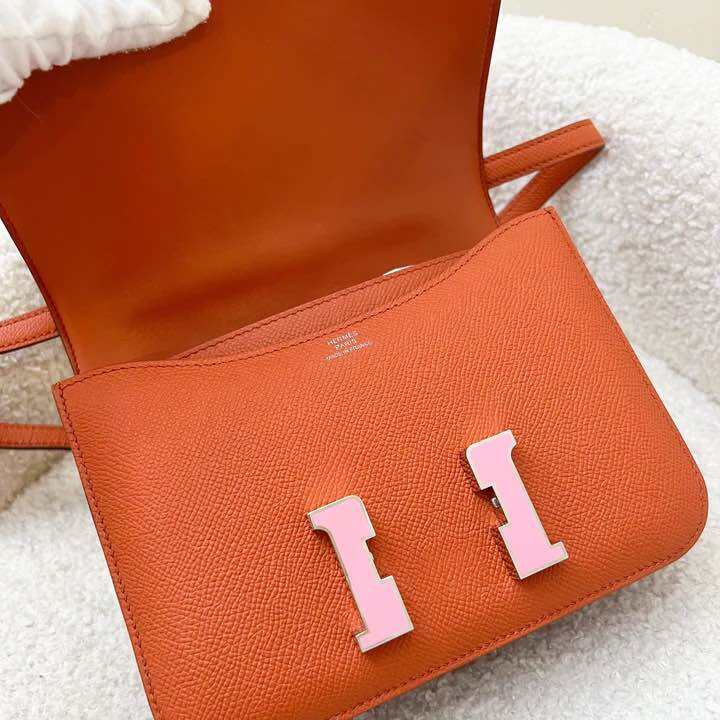 (Pre-loved) Hermes Mini Constance 18 in Terre Battue Epsom Leather and Rose Confetti Enamel Lock