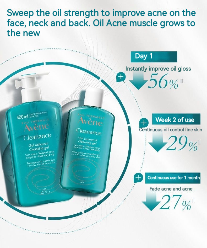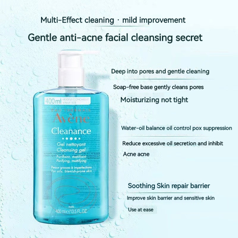 France Avene Cleansing gel 400ML Men's and Women's Facial Cleanser Soap free Facial Cleanser Refreshing Facial Cleanser