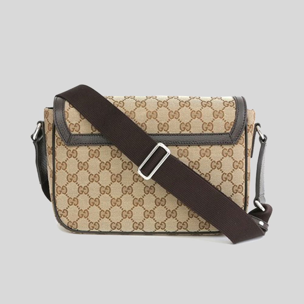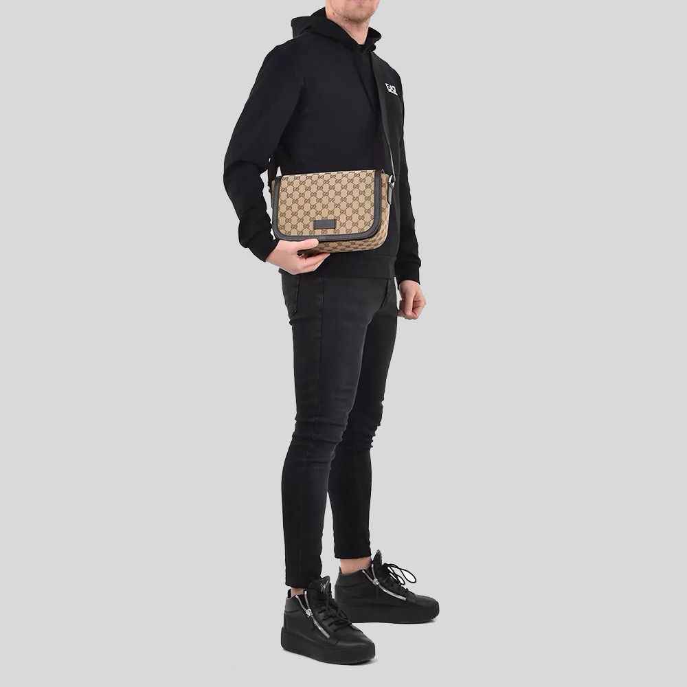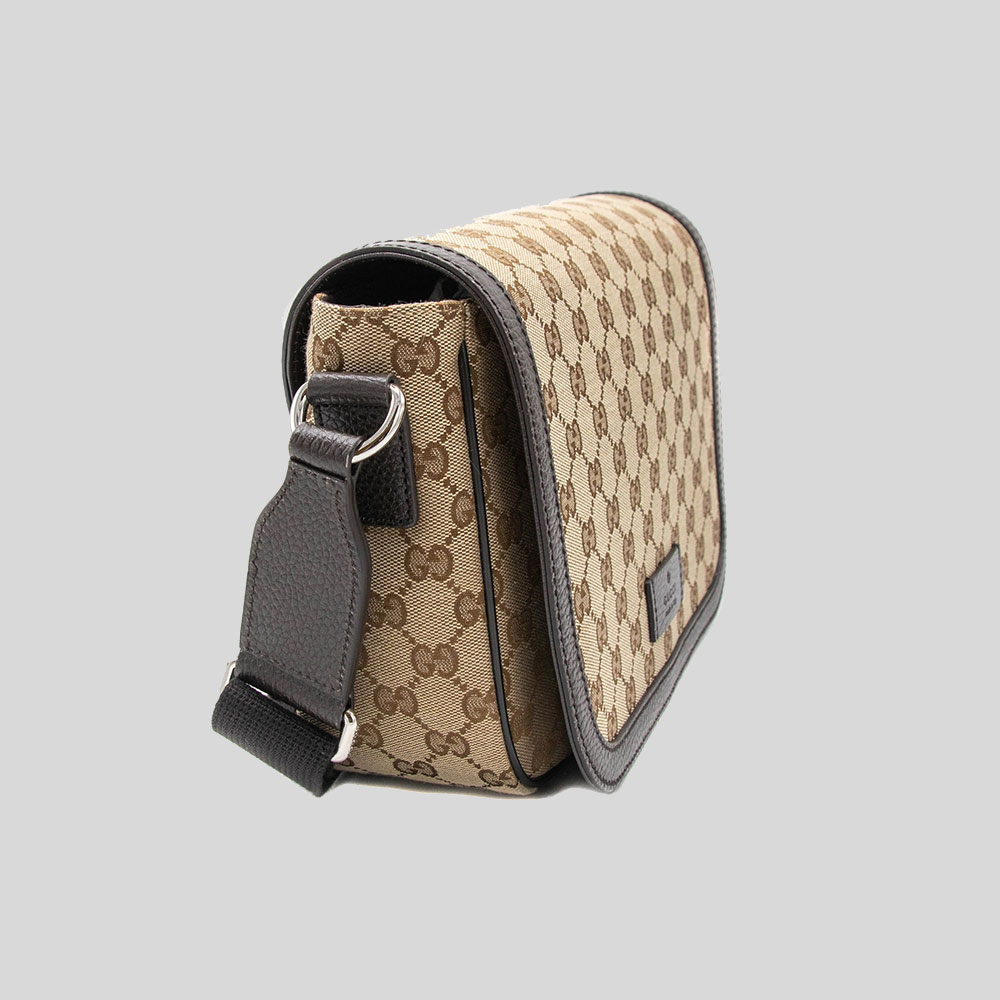 COLOUR: Beige/ebony GG Supreme canvas, with brown leather trim MATERIAL: Leather and canvas SIZE: 26 cm (L) × 18 (H) × 7.5 (D) cm  PRODUCT DETAILS: Ebony Beige Canvas Brown Leather Trim GG Guccissima Pattern "Gucci" Embossed on Interior Leather Adjustable strap 1 slip pocket in front Magnetic flap closure  Internal: 2 slip pockets and 1 zip pocket Made in Italy Style # 449172KY9KN9886 PACKAGING DETAILS: Packed in Gucci dustbag  WARRANTY: Product does not come with any warranty services in the event of wear and tear. RETURN/EXCHANGE: Returns must be unworn, unwashed, undamaged, unused, with the store tag attached. Returns will only be accepted if the product is returned in its original condition with all provided boxes / dust bags. Exchanges are subjected to stock availability.