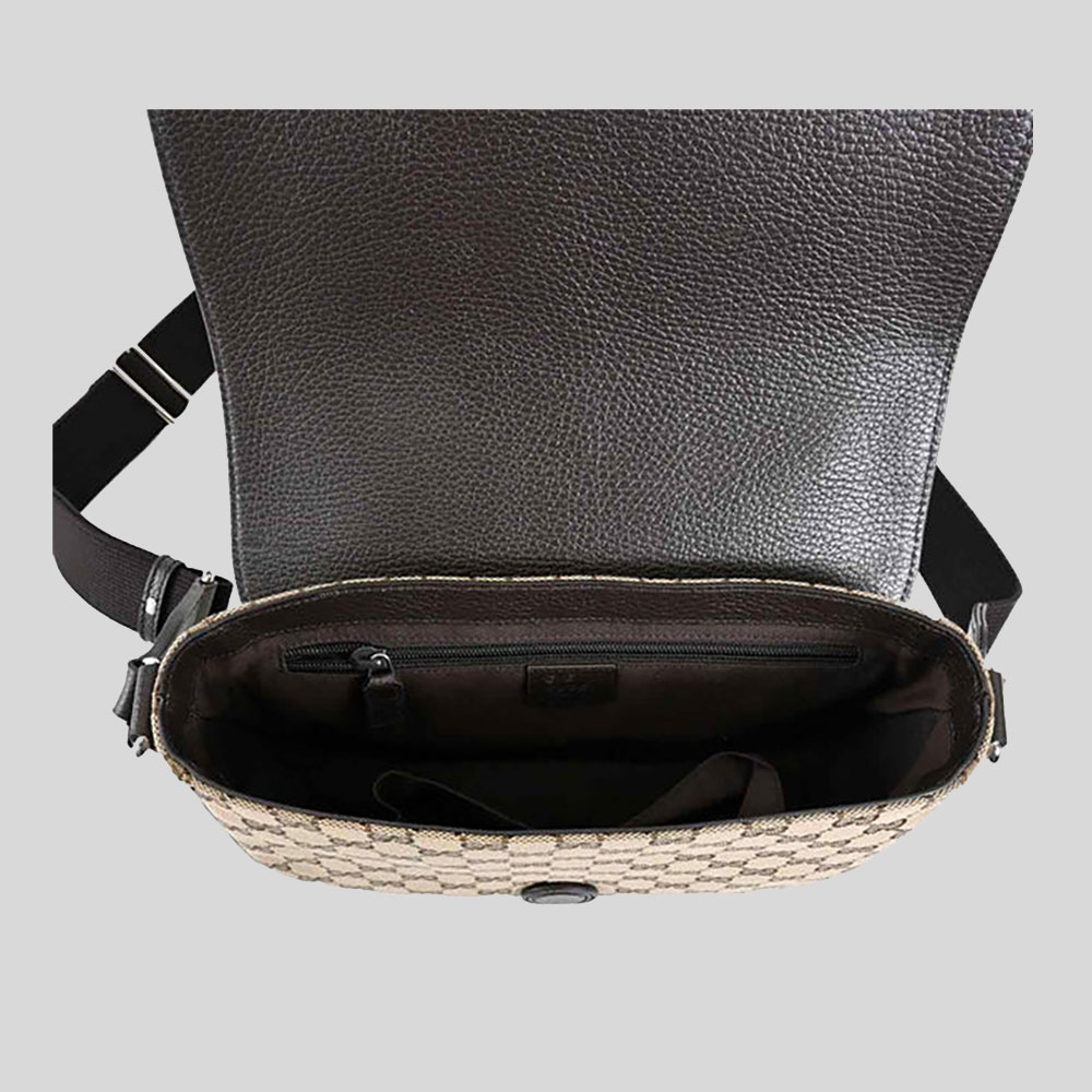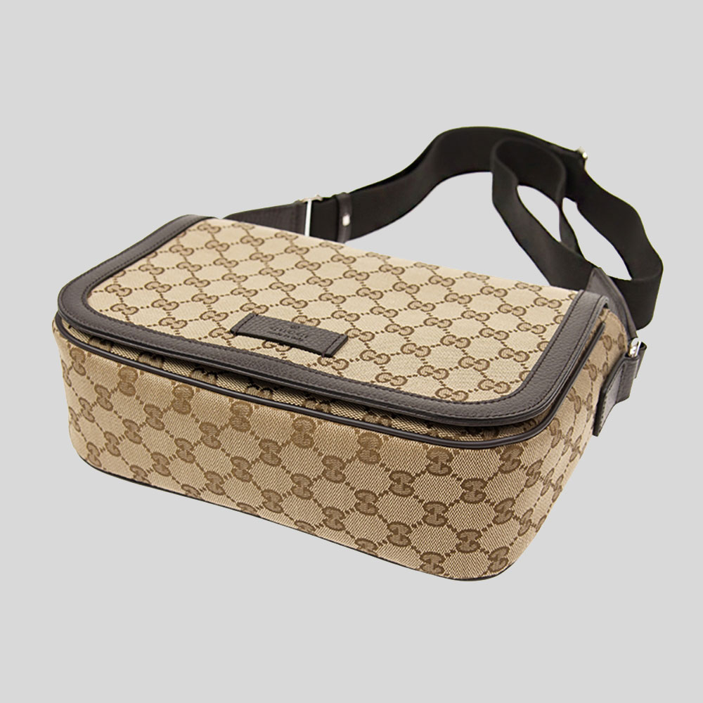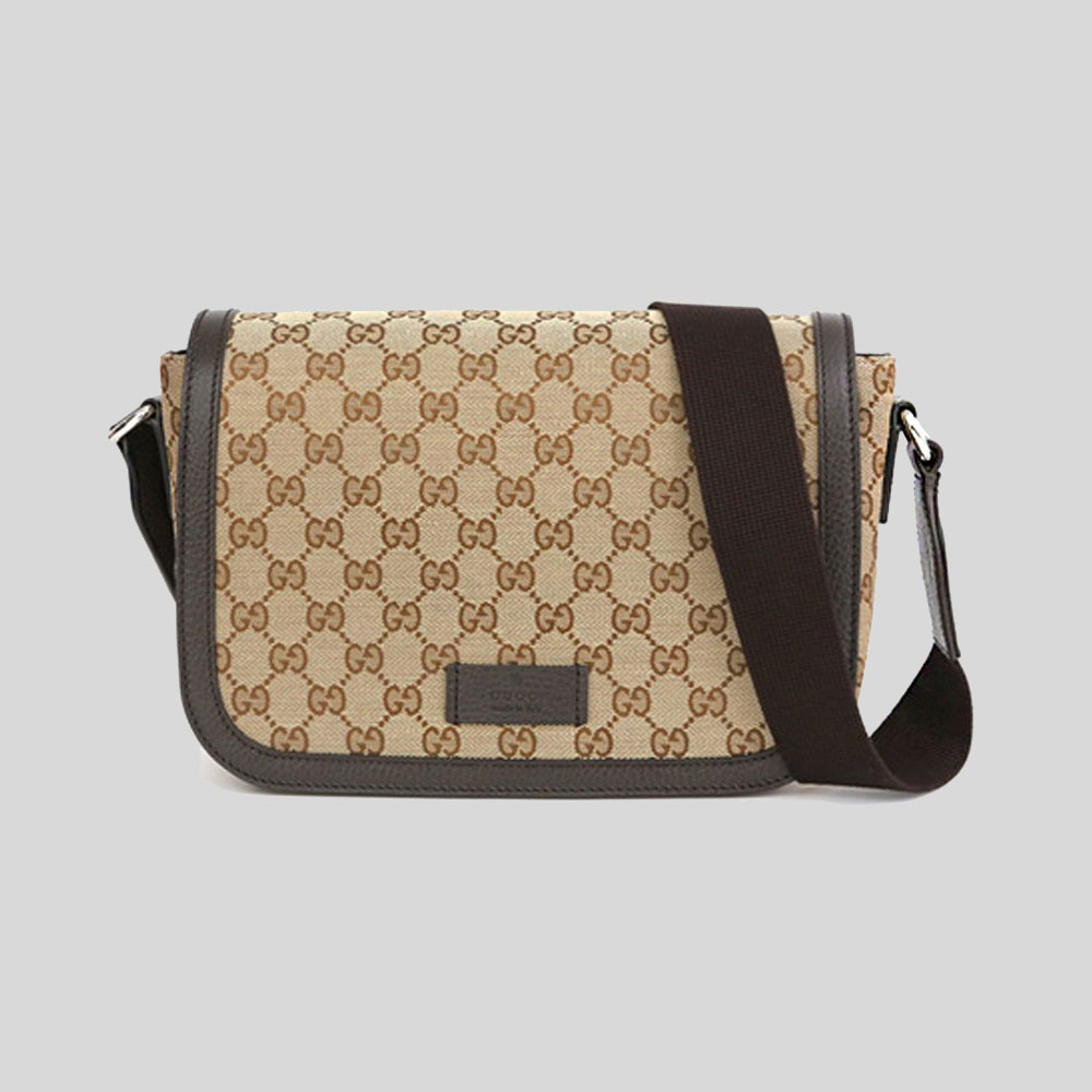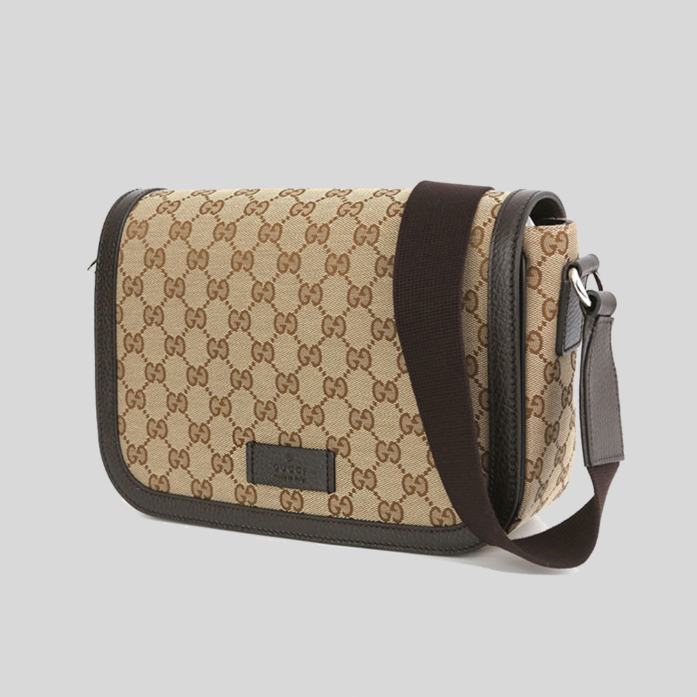 COLOUR: Beige/ebony GG Supreme canvas, with brown leather trim MATERIAL: Leather and canvas SIZE: 26 cm (L) × 18 (H) × 7.5 (D) cm  PRODUCT DETAILS: Ebony Beige Canvas Brown Leather Trim GG Guccissima Pattern "Gucci" Embossed on Interior Leather Adjustable strap 1 slip pocket in front Magnetic flap closure  Internal: 2 slip pockets and 1 zip pocket Made in Italy Style # 449172KY9KN9886 PACKAGING DETAILS: Packed in Gucci dustbag  WARRANTY: Product does not come with any warranty services in the event of wear and tear. RETURN/EXCHANGE: Returns must be unworn, unwashed, undamaged, unused, with the store tag attached. Returns will only be accepted if the product is returned in its original condition with all provided boxes / dust bags. Exchanges are subjected to stock availability.