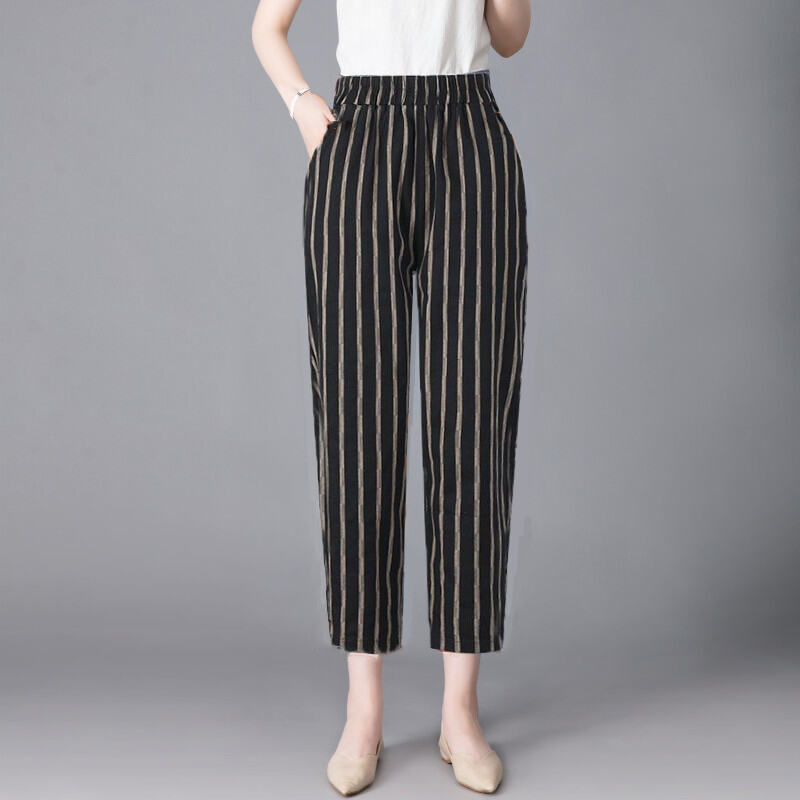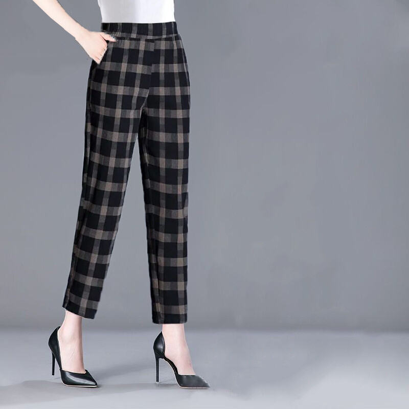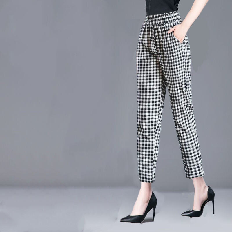100% Cotton Women's Pants Plus size Cropped Pants Women 2023 Summer New Loose Harlan Straight Casual Pants Women Plaid