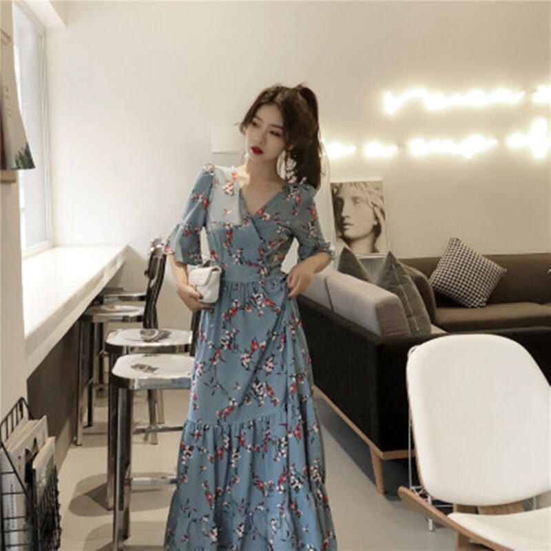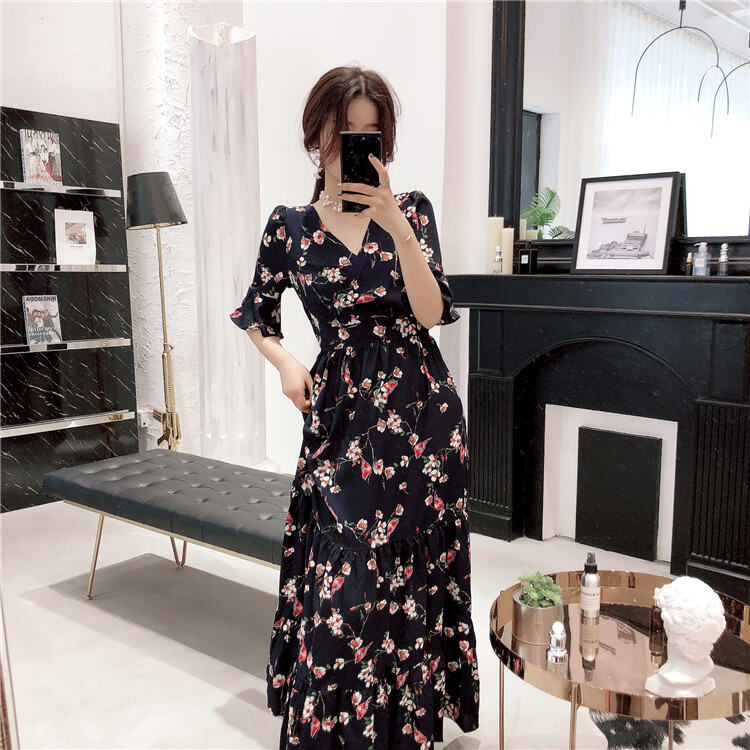 Plus Size Women's Clothing Plus Size Ladies Covering Belly Thin Super Fairy Overknee Dress Summer 2024 New Chiffon Floral Dress
