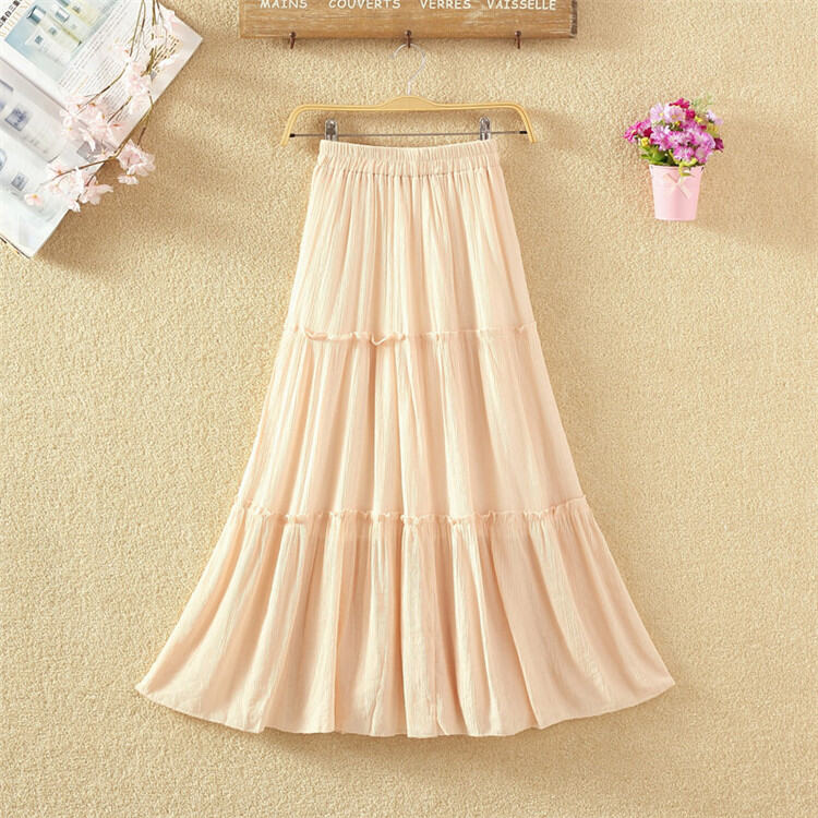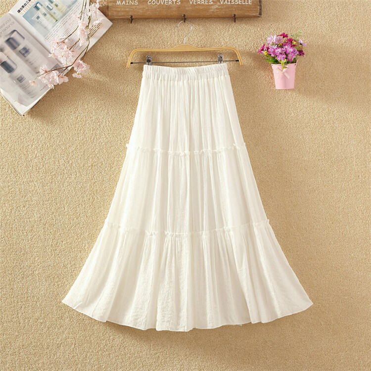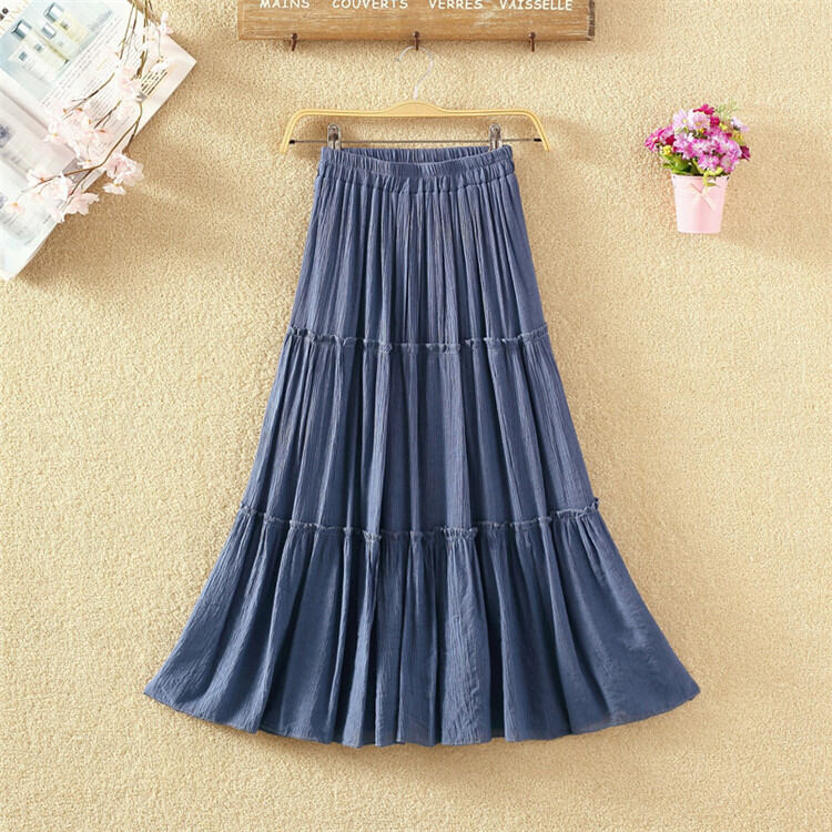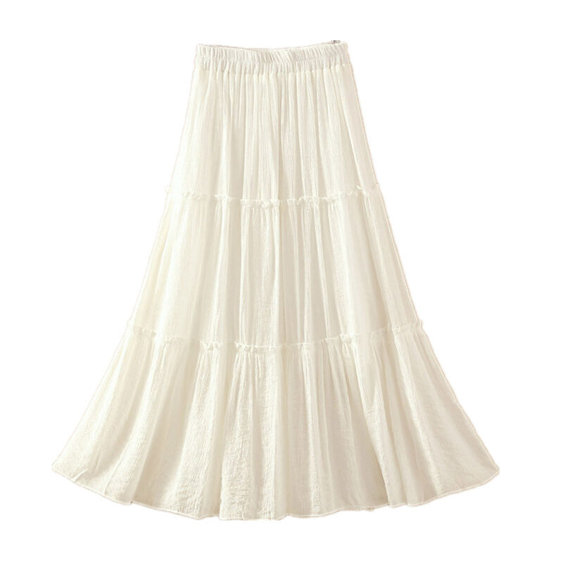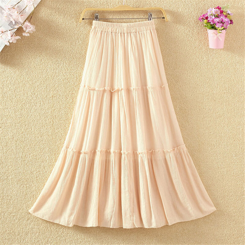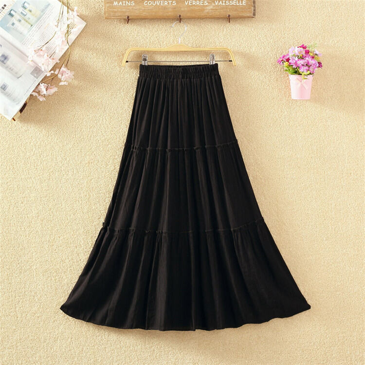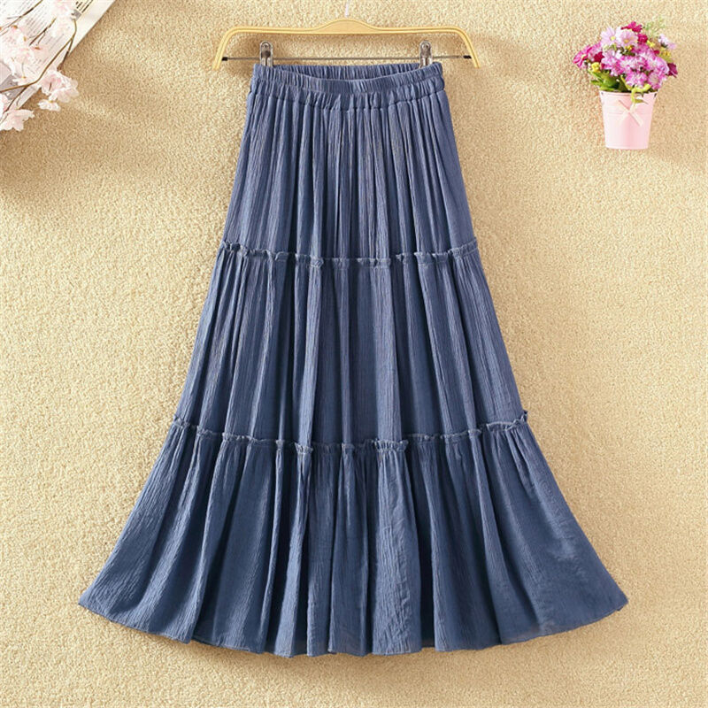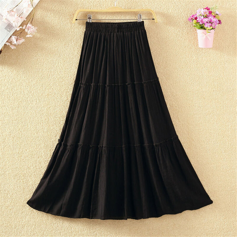 Fall Artsy High Waist Long Skirt Solid Color Versatile Slim-Fit Pleated Swing Skirt Cotton and Linen Skirt Mid Length Long Length Women