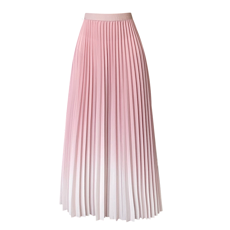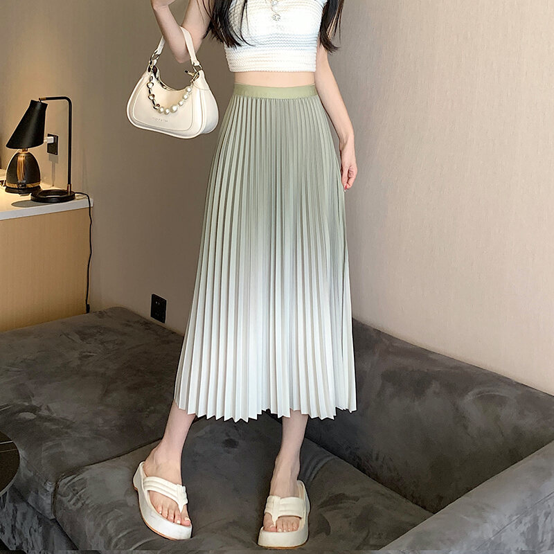 Gradient Pleated Skirt for Women 2023 Summer New Arrival Elastic High Waist Versatile Slimming A- line Midi Skirt
