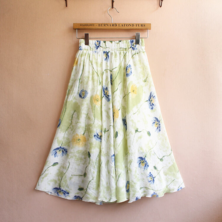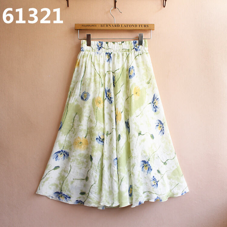 2024 New Arrival Ethnic Style Women's Skirt Retro Linen Ink Painting Printed Short Skirt Cotton and Linen Field Mid Skirt Overknee Skirt