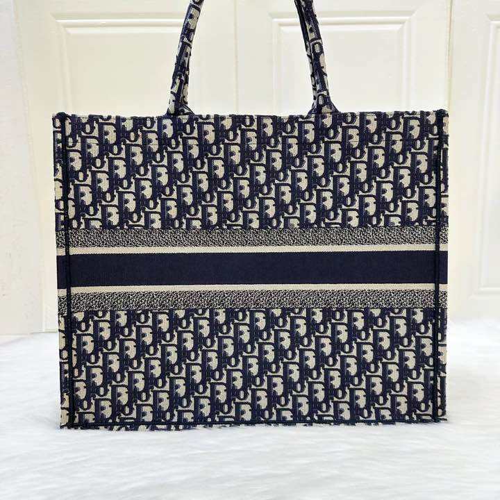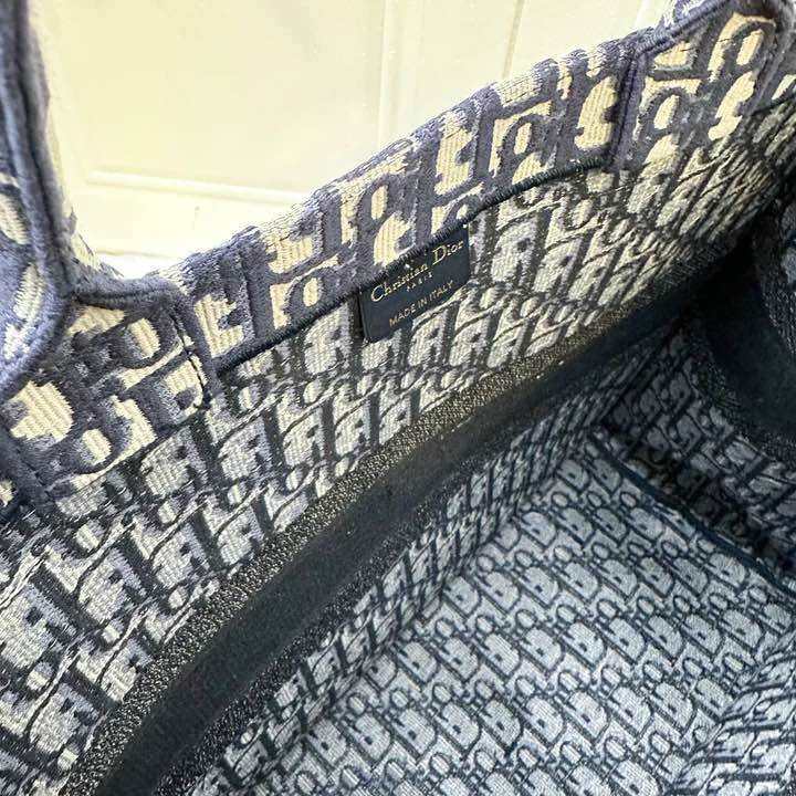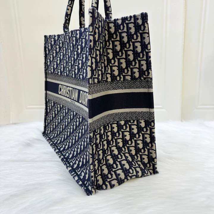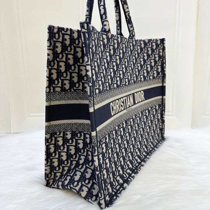 (Pre-loved) Dior Large Book Tote in Dark Blue Oblique Canvas